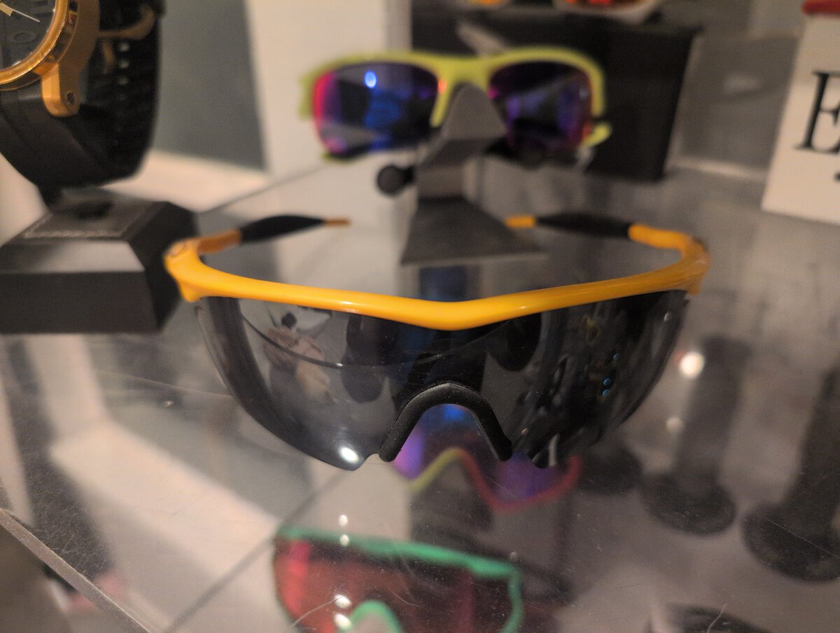 My first pair of Oakleys ever were these Yellow Pro M-Frames, circa 1994? Unfortunately, being the 5th grader that I was, the original ones were lost. This pair was graciously given to me by a close friend at Oakley since he knew they were so meaningful to me. We truly felt like a family back then!