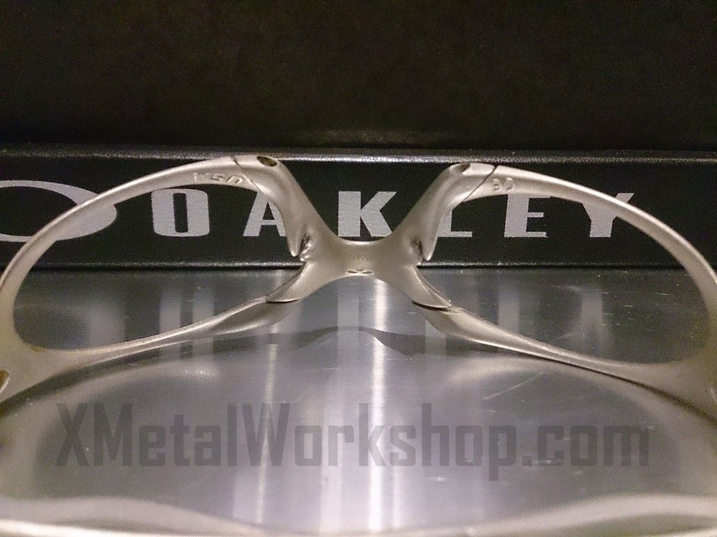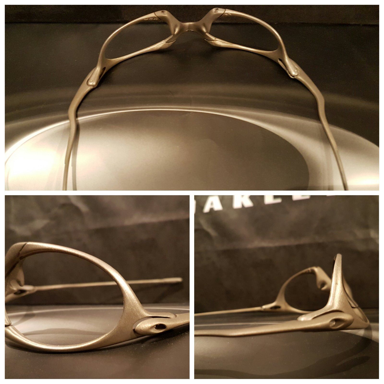 The first gen plasma/titanium coatings are unique but unfortunately are prone to tarnish/yellowing, black stain corrosion, and eventually getting rubbed off into a polished/sheen patches. My previous approach of restoring these frames had addressed the yellowing and about 90% removal of black stains but had limitations with addressing rubbed off polished/sheen effects. So after spending a great deal of time R&D on addressing this issue, the new approach delivers much better results of restoration by addressing all 3 problems. Here's some Ti finish frame half done to clearly show the before/after.