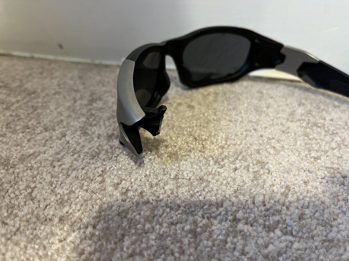 Listing is for a used pair of PitBoss 2 Matte Black/Black Iridium Polarized Lenses. Frame has a broken ear stem (PLEASE SEE PICS). Lenses are in ok shape with some scratches in field of vision and are noticeable. Thanks for looking and feel free to ask any questions.