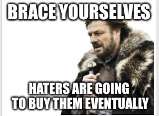 "Brace Yourselves, Haters are going to Buy them Eventually"