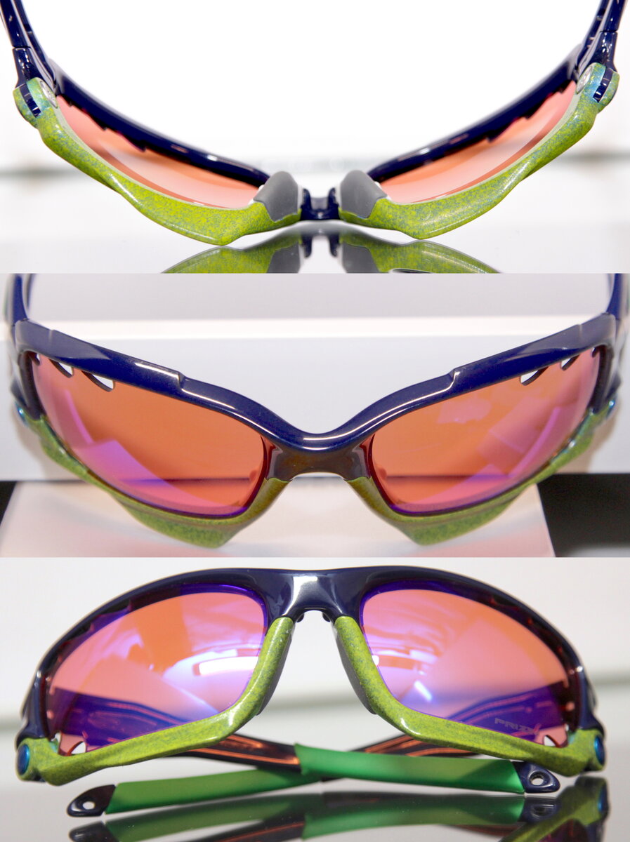 Jaws were painted a mix of citrus lime green + brilliant blue flake. Temples + Upper are really the only part here that will show some signs of wear, in the form of some light surface hairlines but no major scuffs or scratch marks that I could find. Temples still retain the snappy feeling in open/closing, there's a touch of slack in either position but nothing drastic.