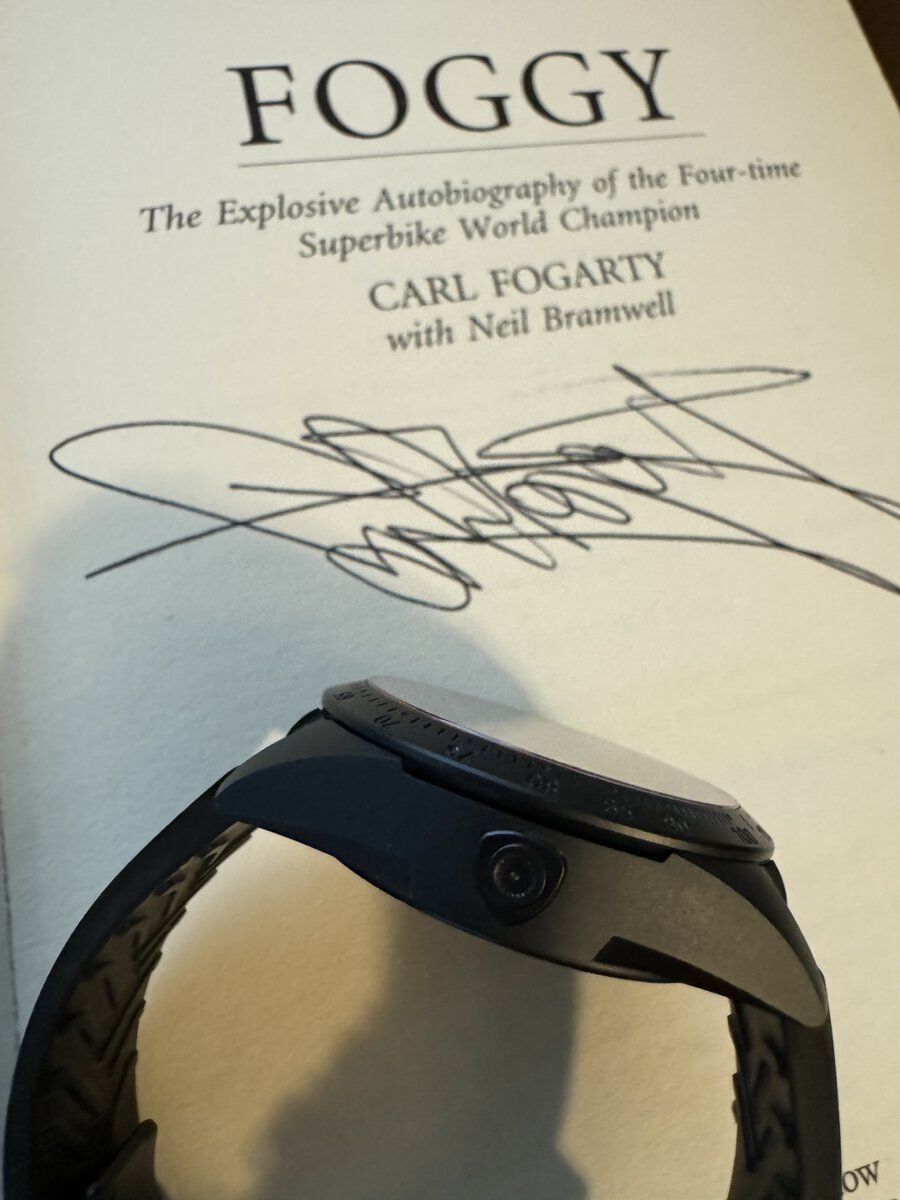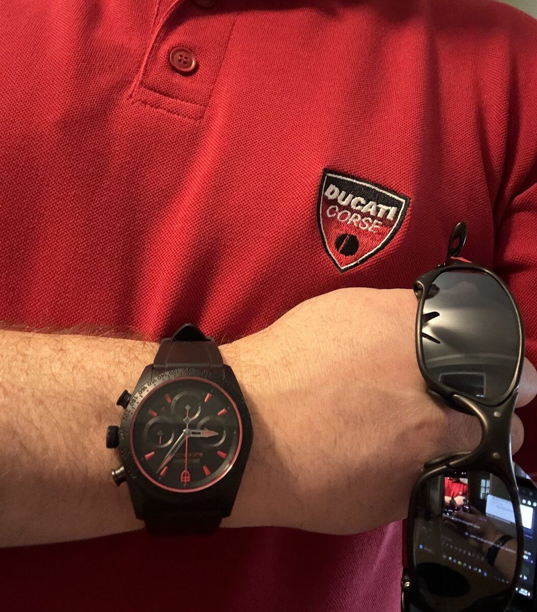 Carl looks like an angry Sean Penn, strung out on steroids and NoDoz... even his signature looks overly aggressiveDucati anyone? The watch is the Tudor Fastrider wi to the Ducati shield on the side as a quick date change hack,