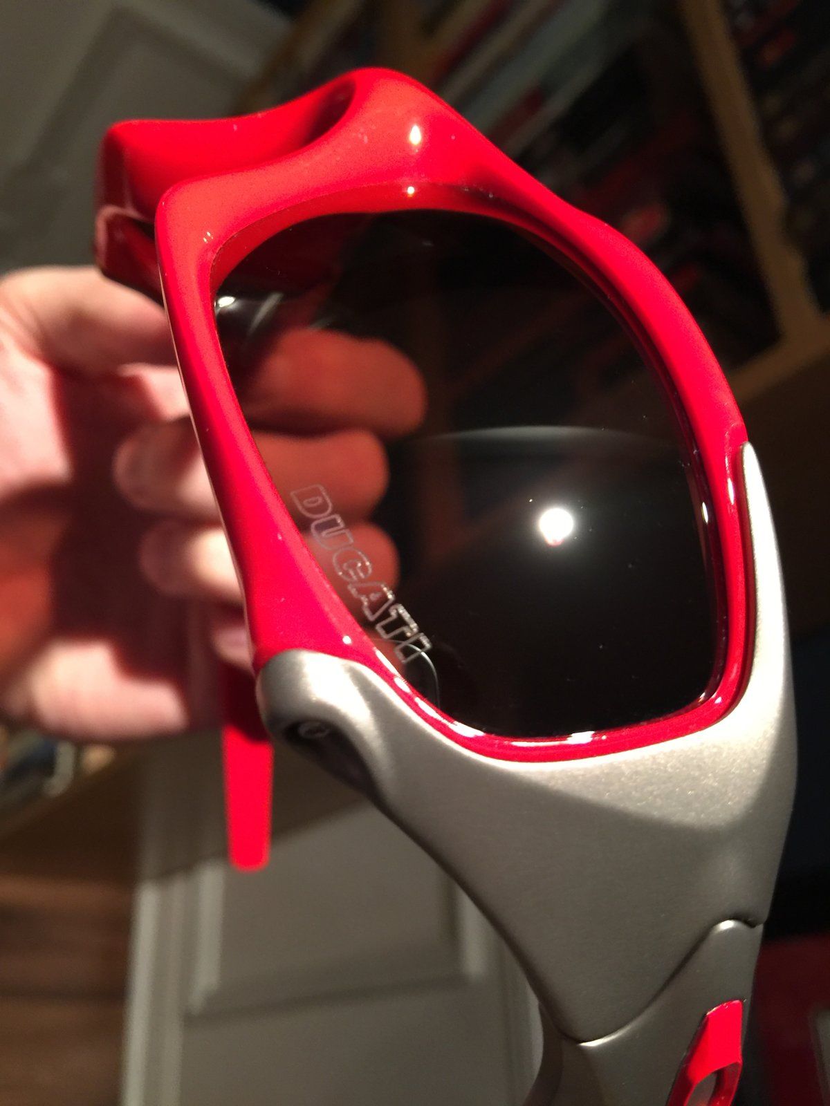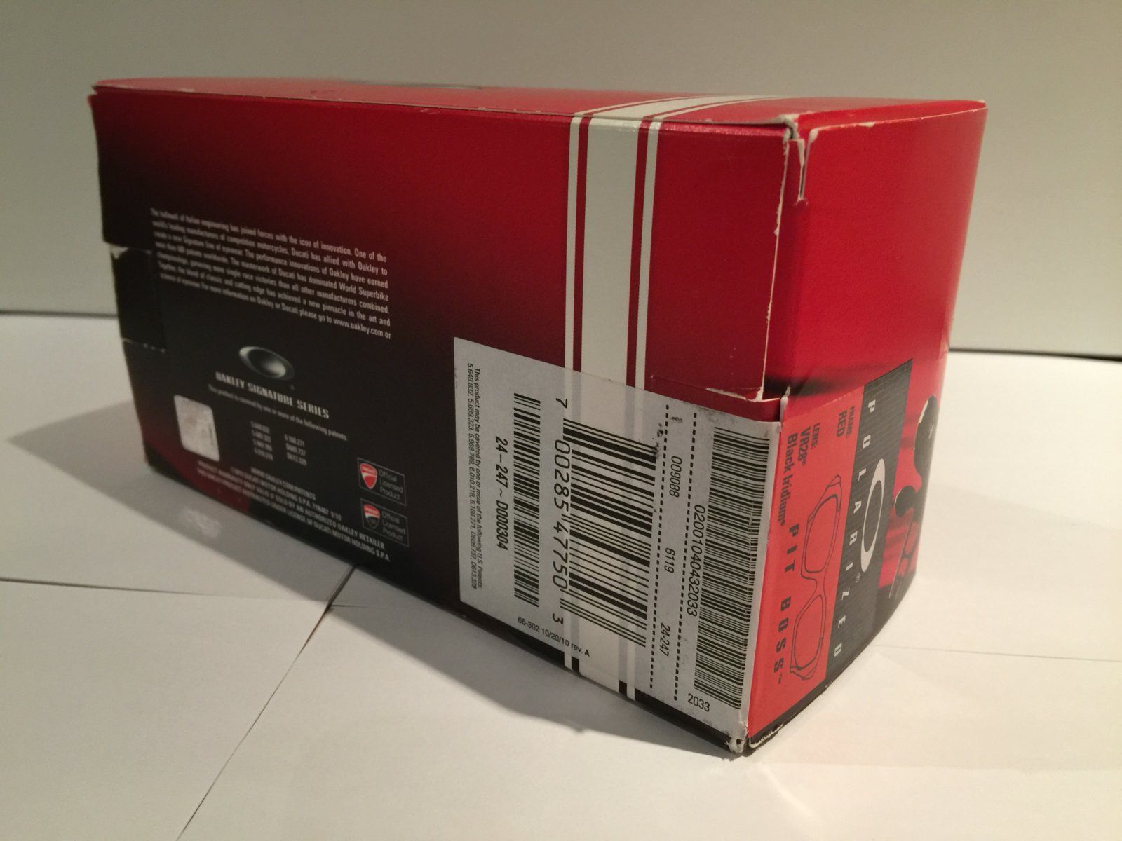 They come with everything except the wooden box (outer box, inner box, paper work and Ducati bag). I've spoken with @X-Metal Beast about his replica Ducati boxes: http://www.oakleyforum.com/threads/regular-oem-pb1-boxes-turned-ducati.65019/ and I'm will to split the cost of one as part of the deal.