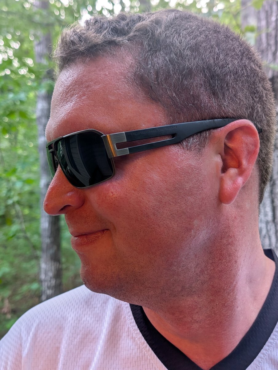 Porsche Design P8460. Acquired from Poshmark for just $40 due to a slightly cracked lens. I can't find much about the model online beyond the fact that it exists and appears to be discontinued. No idea if these are legit or knockoffs, I know nothing about authenticating Porsche Design except the standard things that apply to all models...they seem to have all the right markings, and the model doesn't seem to have been very popular, so perhaps they are genuine. I think they look good in any case!