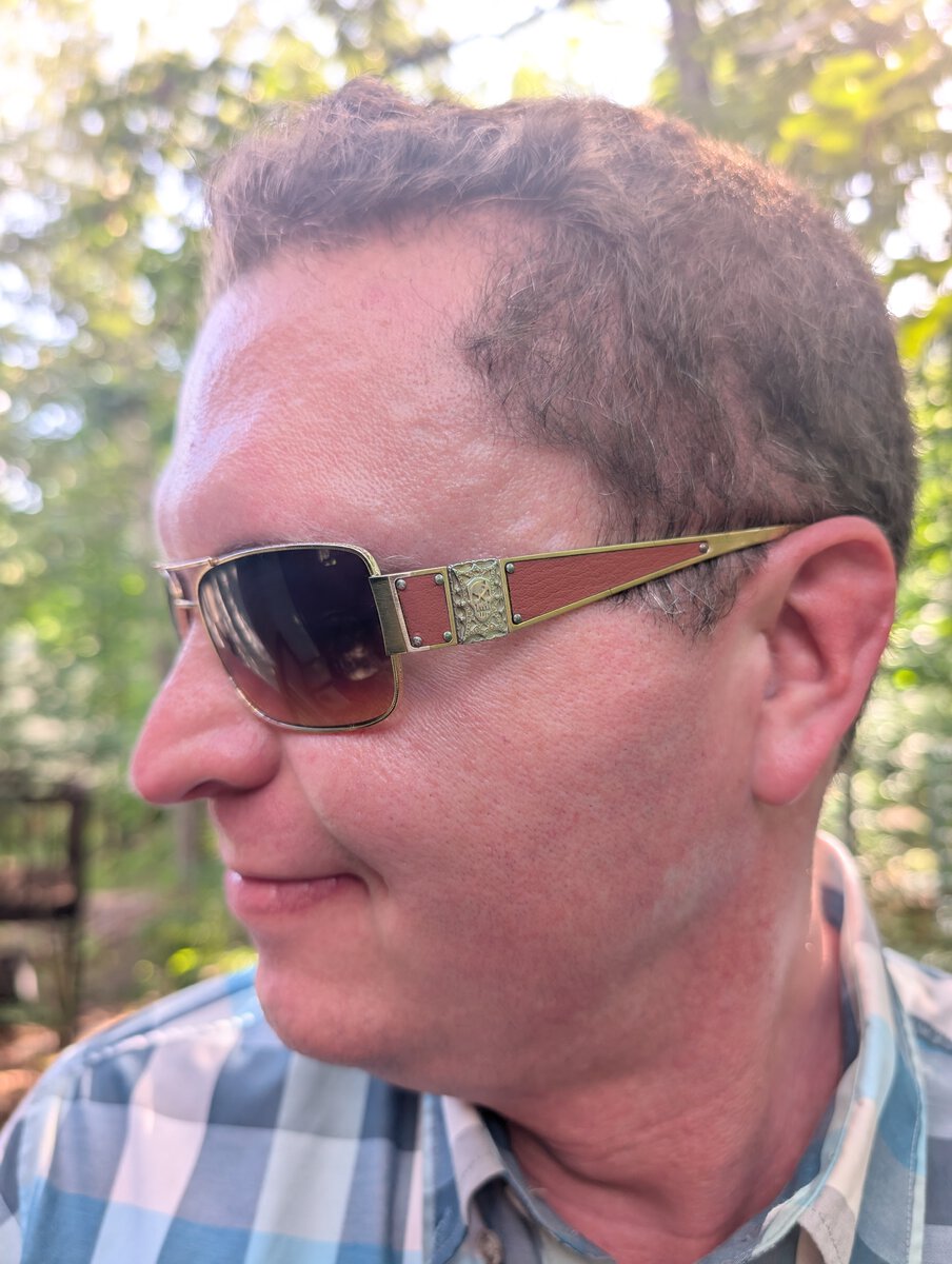 My favorite of the 3 by far. This is the first gradient lens I have ever tried, and I'm not sure why I waited. Love the look and the view through them, will definitely seek out more in the future. Also the only gold frames I have. The skull detail on the temple is interesting, actually did not know what it was from the photos in the listing, so that was a cool surprise. Gives it just a bit of edge teenage me would have loved without being too gaudy for the adult world.