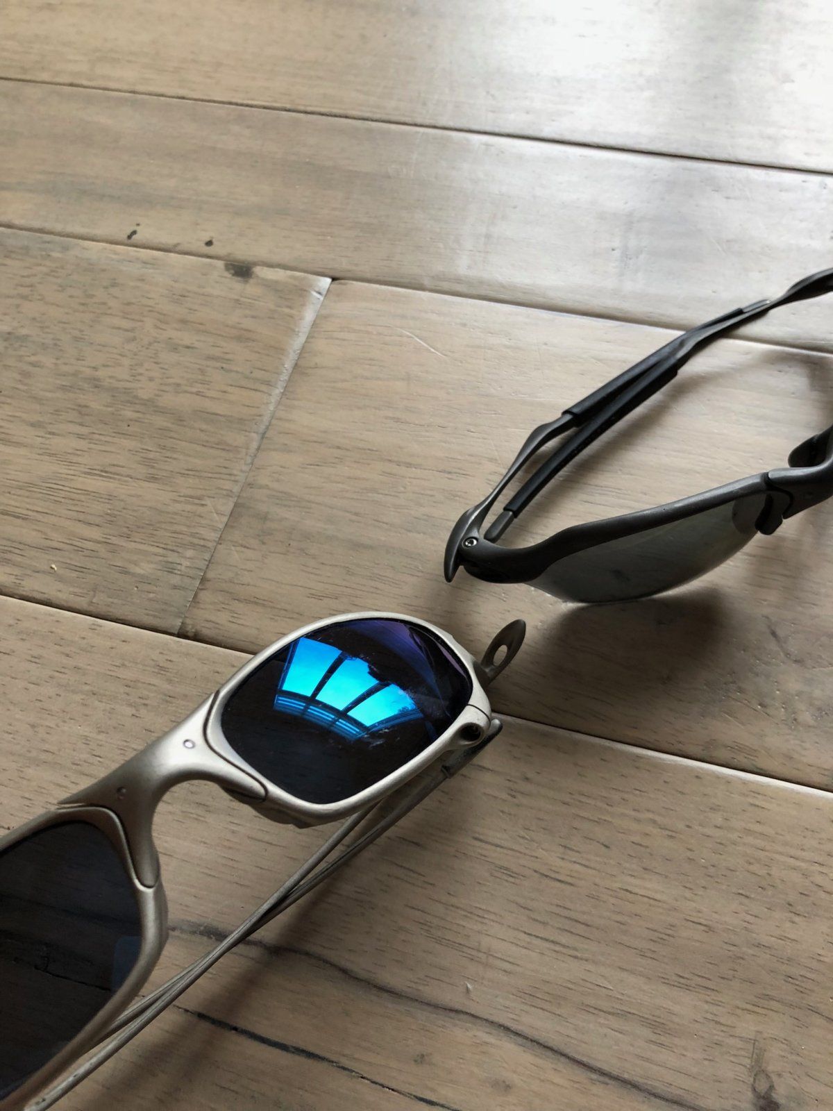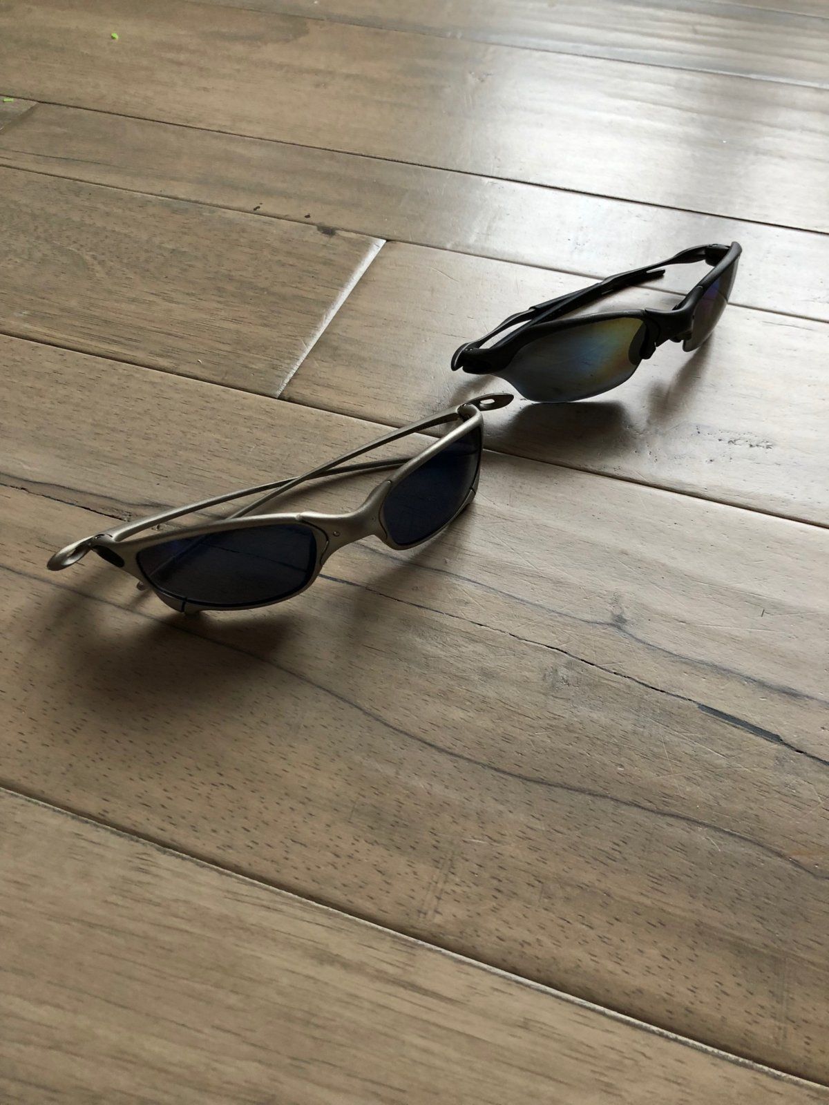 I found these sunglasses after not wearing them for 10 years or so. Could you help identify them for me? I think the silver is a Xmetal Juliet. Also i am thinking of selling them - what is a good price for the glasses? I don't have the original boxes. Thanks.