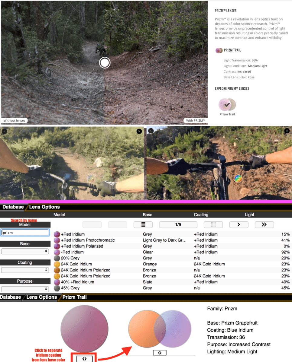 O-review lens options aren't going to do much better than oakley's site, though I do like the ability of separating the iridium coating color from the base might be helpful in determining which bases you can pick up on vs the ones you can't tell.