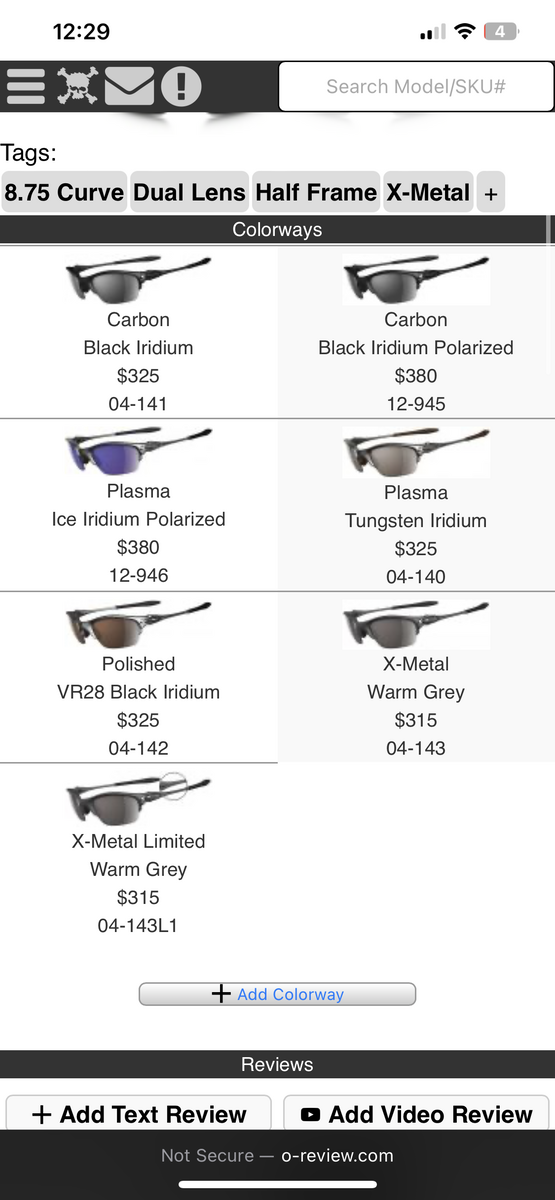 In good condition it’s worth 3-400 it looks like. I’m not real into the Half X but it sounds like yours is a plasma/Ice which around here the more colorful the better in terms of pricing.Hi I have just found my old sun glasses witch are half x 12-946 and was wondering what they would be worth as I remember paying a bit for them in the day but now the kids want to wear them still have box and coin do I keep them or let the kids wear them