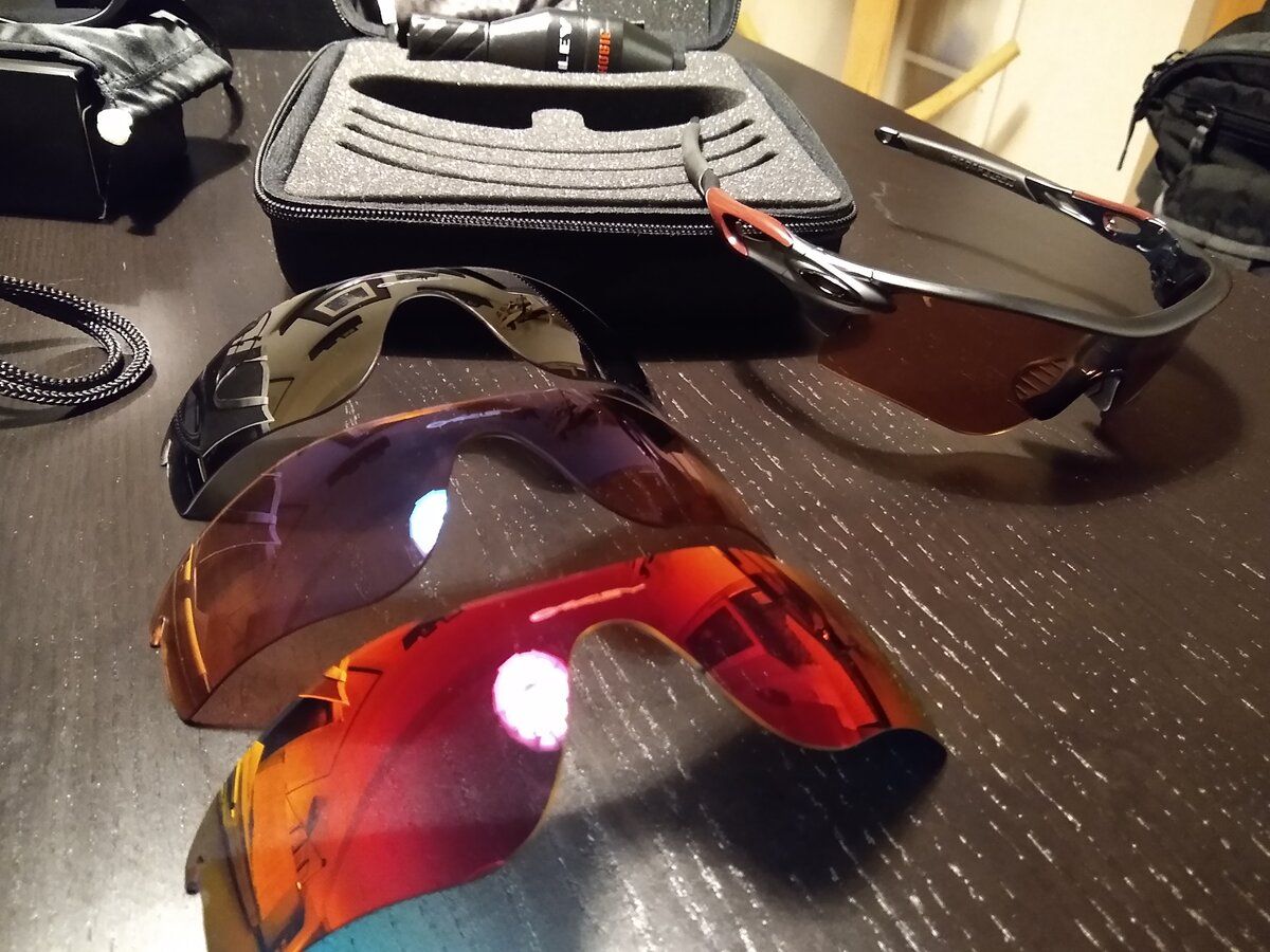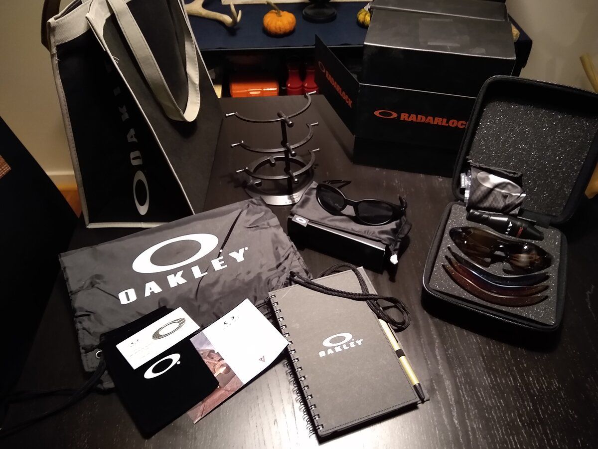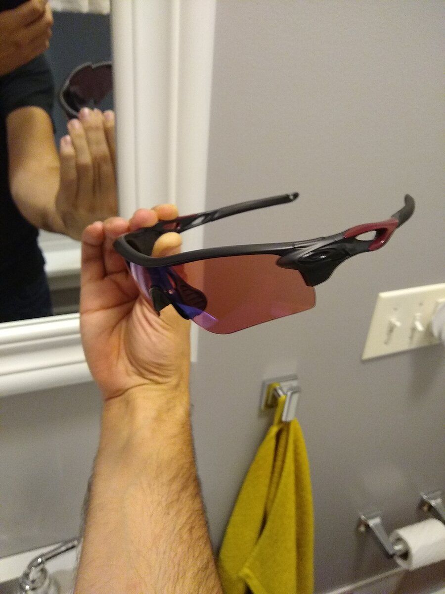 The manager had a discontinued Radarlock Path bundle, (pre-Prizm). Since it was missing the frames, we custom built a pair from stock. I chose Ink matte frame, cardinal red sidepieces, and gloss black icons. 4 lenses, case, microbag and cleaning solution included. Discounted to $199..
