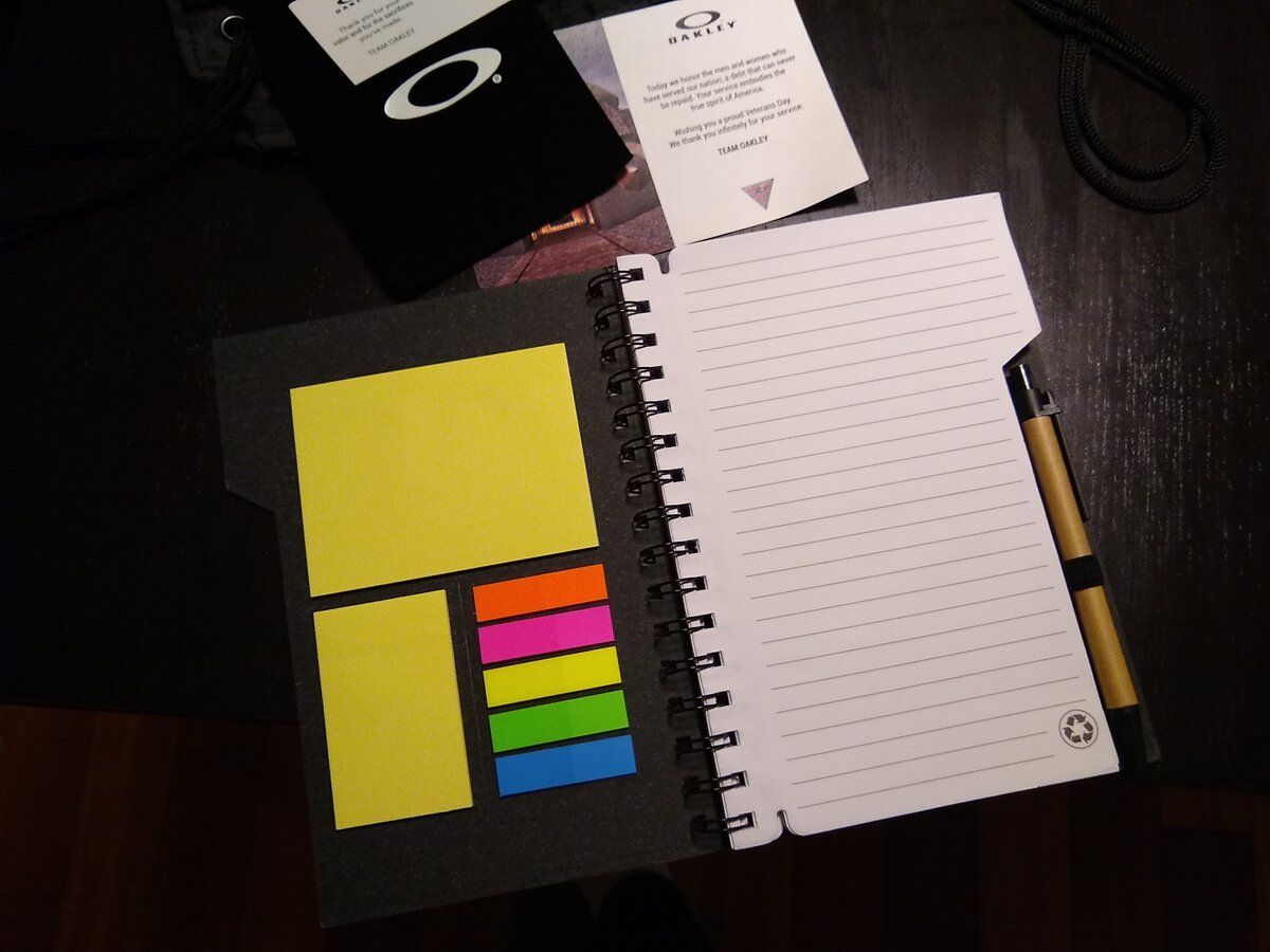 Manager threw in some swag for free: Sunglasses stand, notebook. 2 bags. And a serialized Veterans pin.