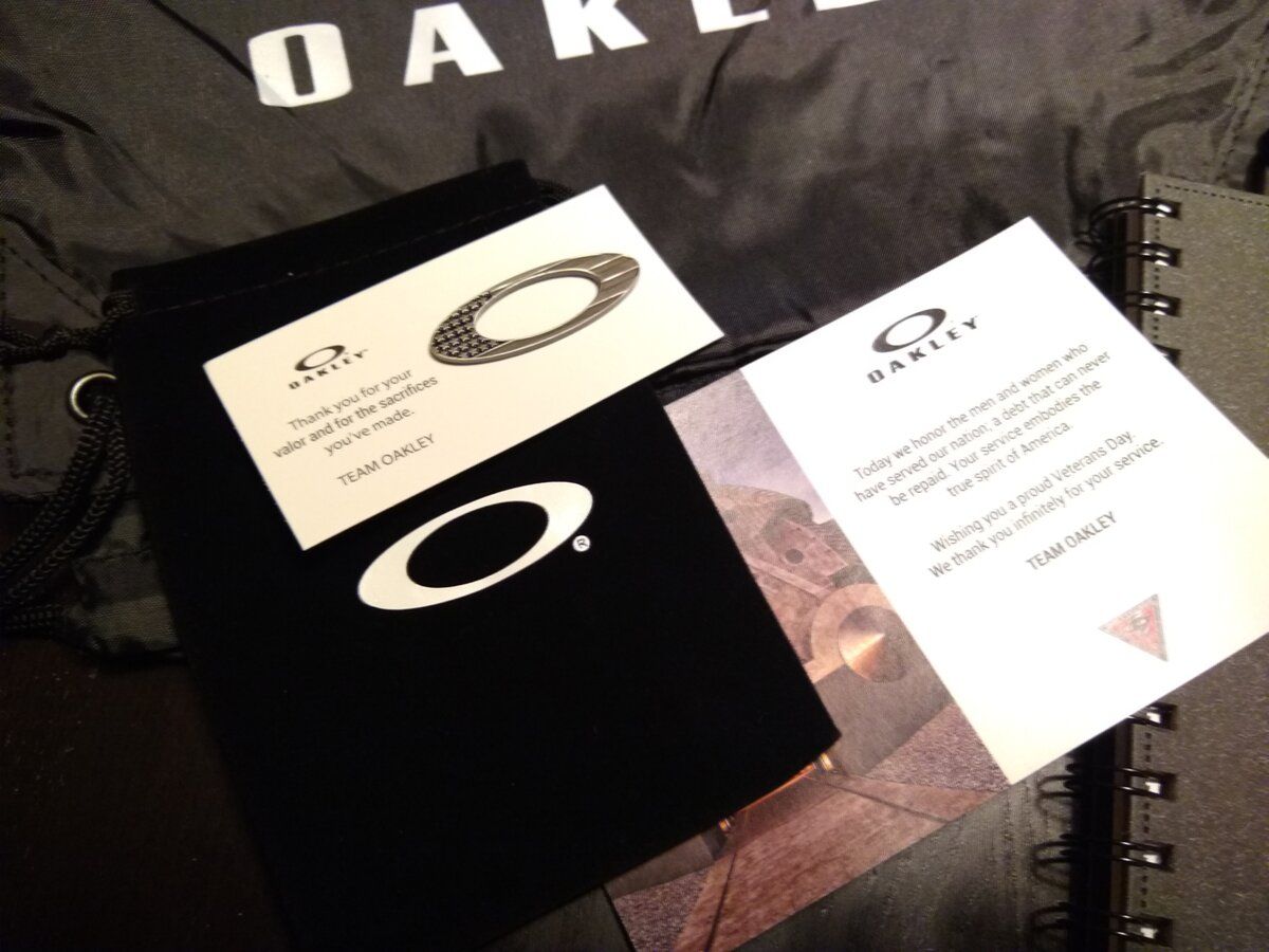 Manager threw in some swag for free: Sunglasses stand, notebook. 2 bags. And a serialized Veterans pin.