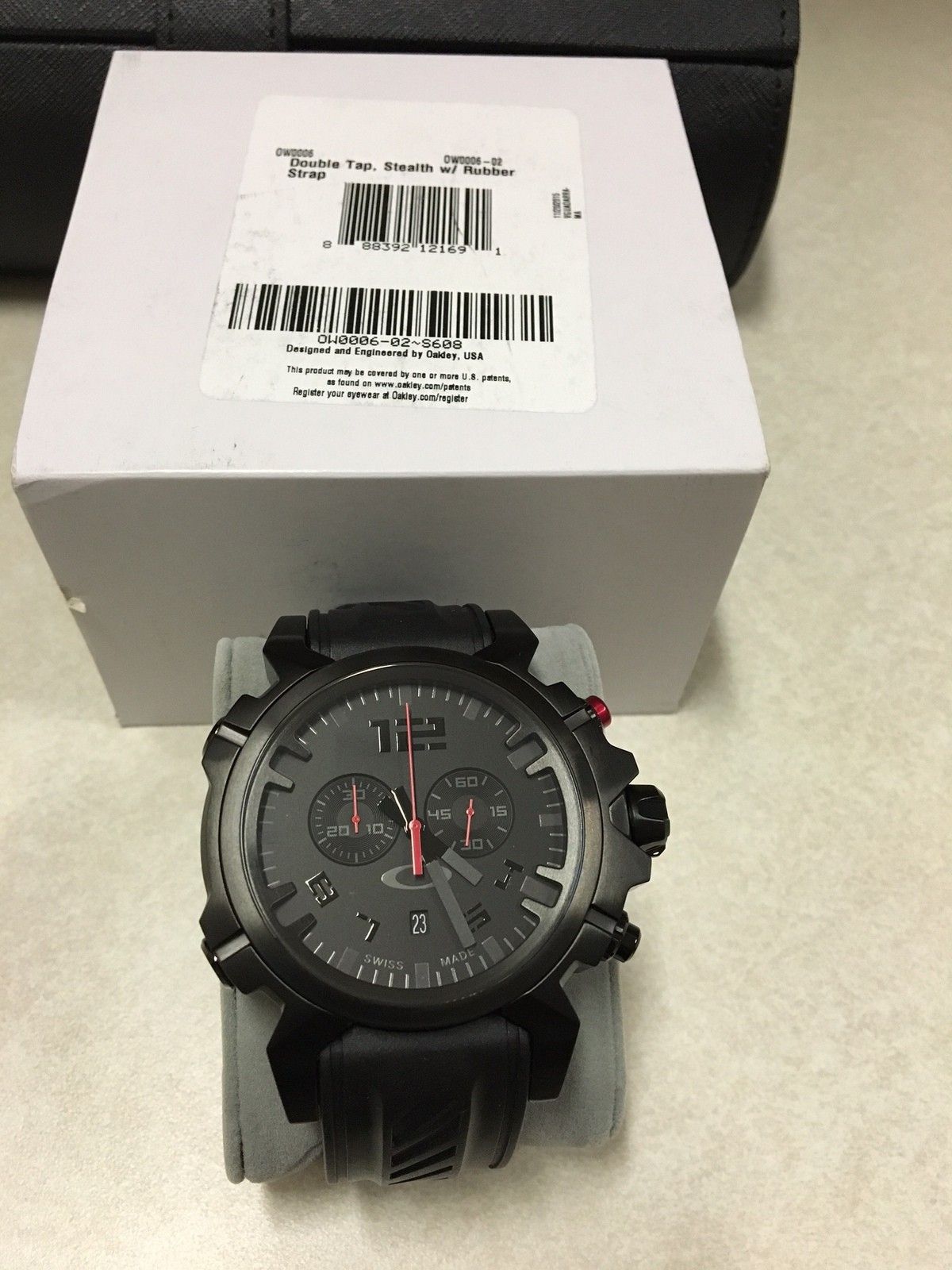 Well fast forward to Sunday. Went to look at some sunglasses (eyeing the new Twoface Prizm) and I spot the Stealth Double Tap watch. We had already opened 30% coupons and after looking at the watch, the girl told me she would get me a 50% coupon if I really was interested in buying it. After a quick discussion of how it had just come in and how Oakley was done making watches (I didn't know this) I decided to pull the trigger. I really like mechanical automatics and I appreciate fine timepieces so I don't really ever consider buying a fashion watch. But Oakley's designs have always been cool and for the price I figured it was worth a shot.
