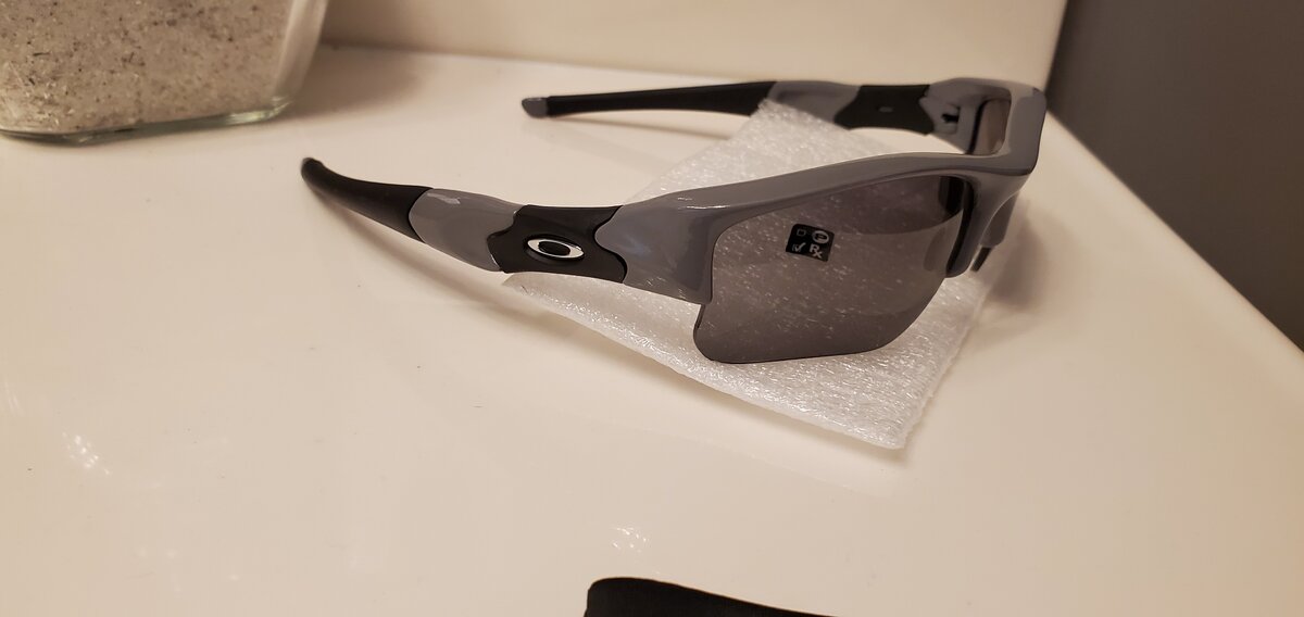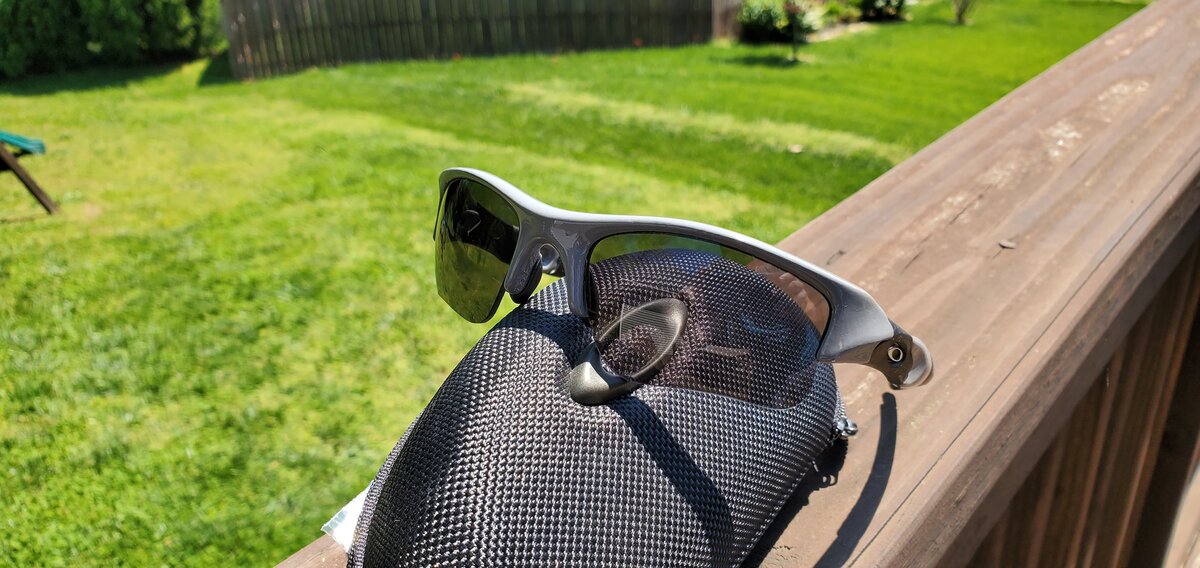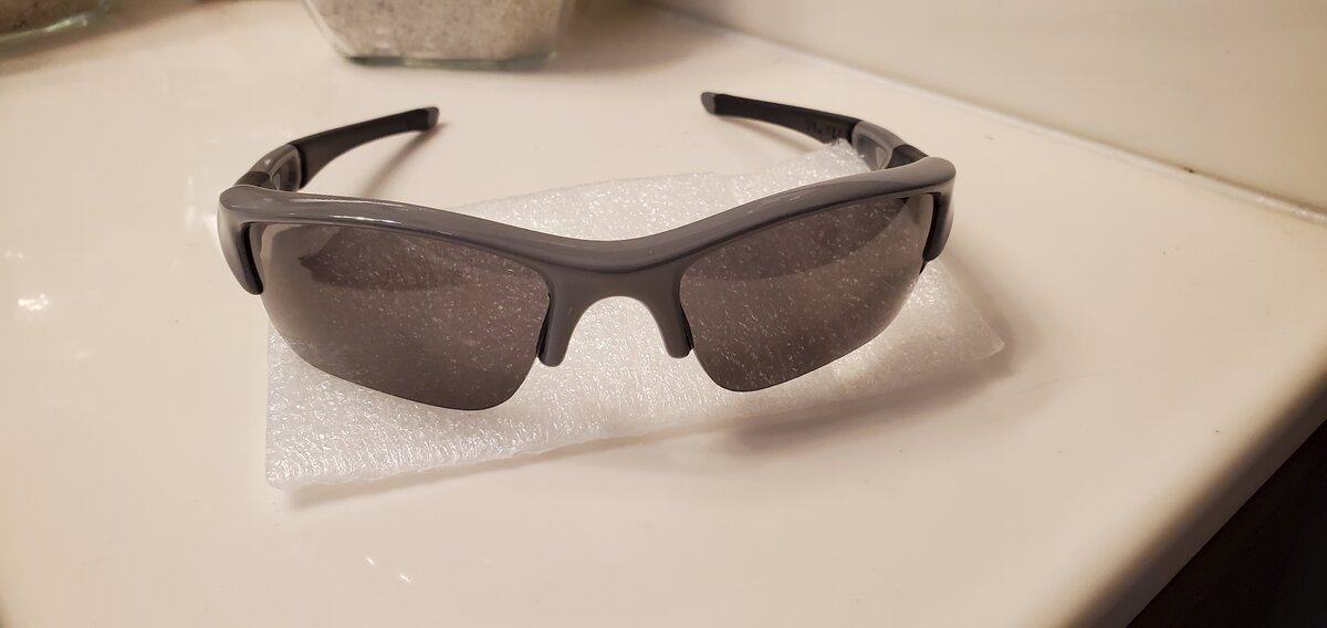 My neighbor loves my collection. He has a few pairs of Oaks himself as they are all he's ever worn. He saw the PBII I had painted and wanted me to give a shot at his severely beaten polished black Flaks. He wanted them in a gray like my X-Metals...I told him that I don't have the skill or the equipment to do anything like a mock XM finish but that I could send them to a pro. He told me no he wanted me to do it. And that he wouldn't charge me for the landscaping he did this past fall. I was like...ok.