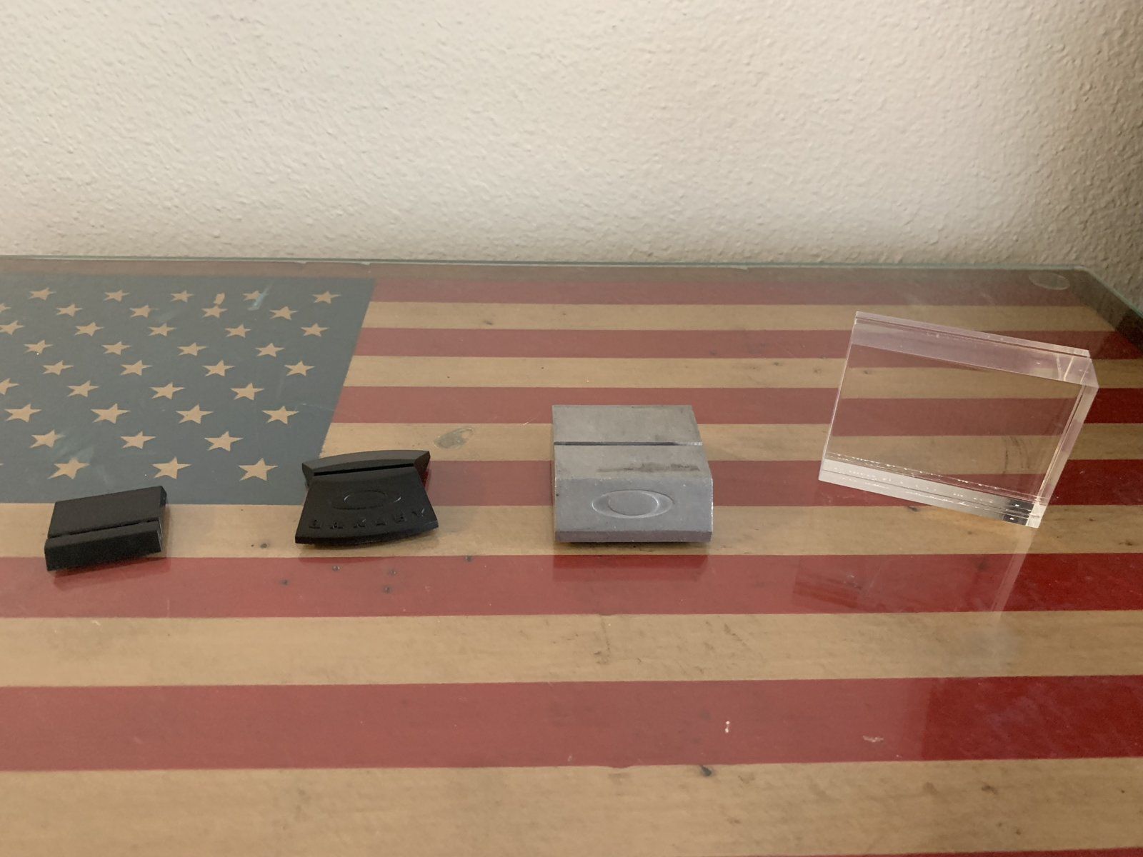 I’ve never seen that first one before. I doubt oakley ever used them. The aluminum one was the first one they used. Then the black one and then the acrylic.