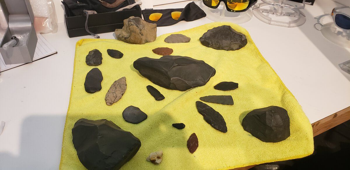 They are part of an Arrowhead collection I found up in a remote area of Alaska, The large basalt piece is a Axe head, There is a spearhead, A hammering stone, Mortar Stone. Quite a few not picturedWhats the story to the rocks?