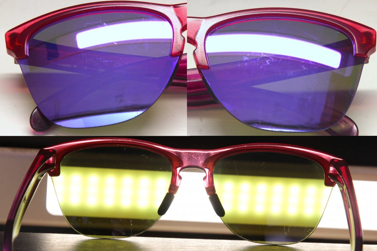 Additionally have these Coast Purple frames; faces have some marks, temples have rainbow pearl clear coat on the outer surfaces.