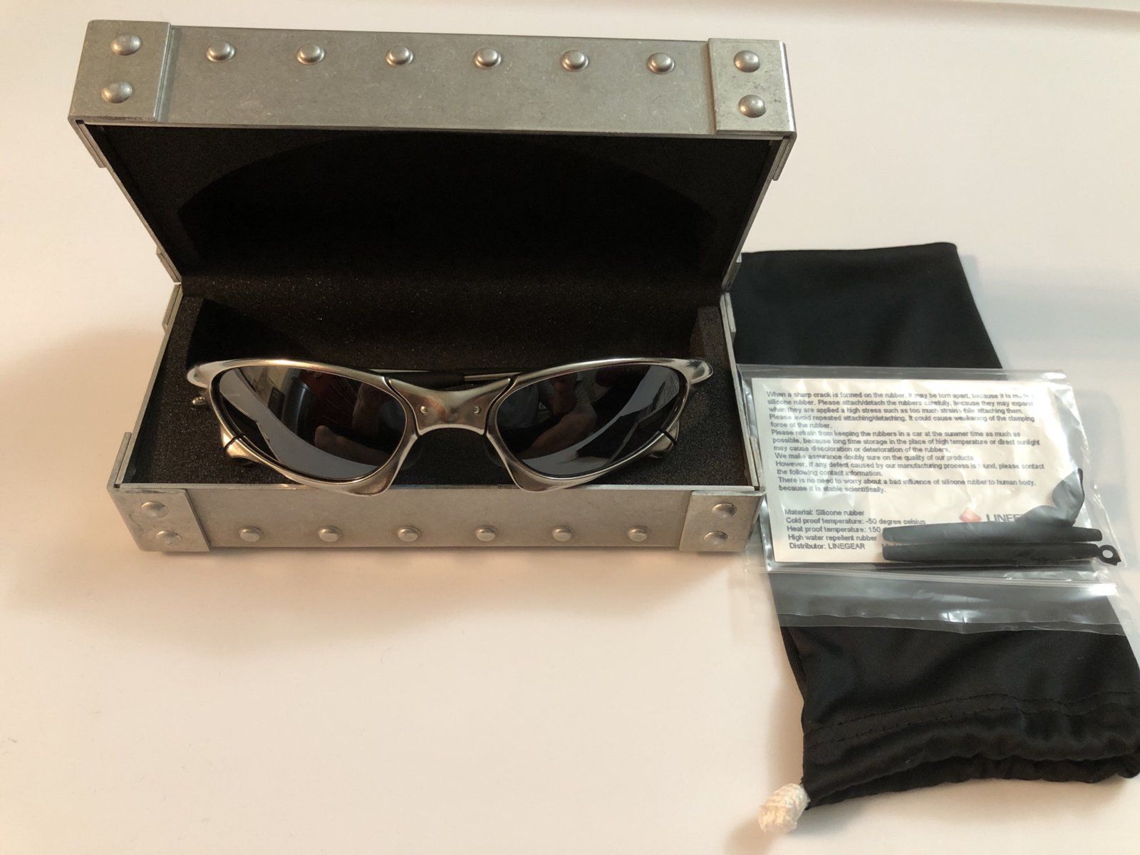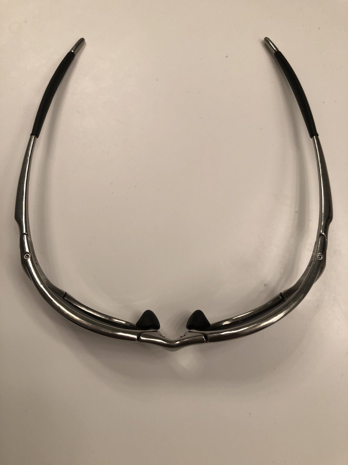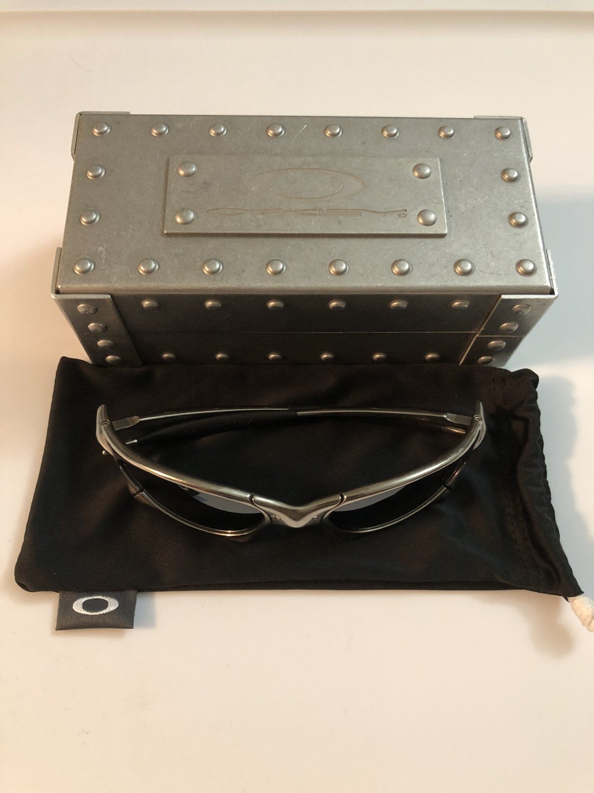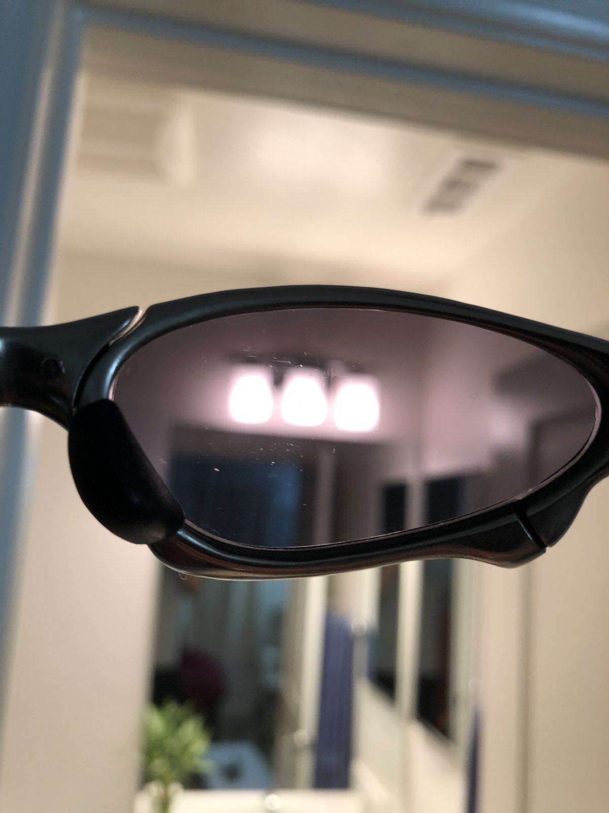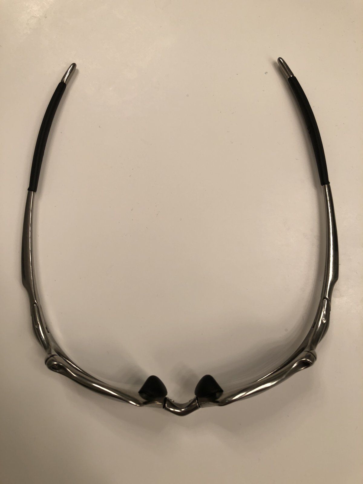 For Sale is a polished Penny with Black Iridium Lenses. Some discoloration on the frame (patina). Small scratch on outer right side of bridge near pin. Bridge is tight and not needing a tune. Lenses have scratches in center of vision. Rubbers in like new condition.