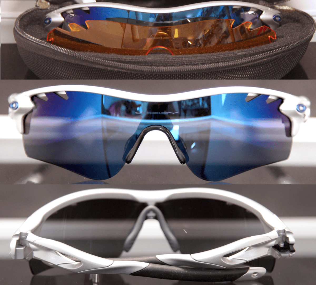 These came include with a purchase I made, not particularly my style comes with soft vault in excellent condition - can throw in a new head strap if buyer wants one. @SouLFuLFroG has done a number of cleared custom Monster Dogs, these Radarlock frames could be a donor for a similar customization; as under the silver paint finish they're a clear semi-opaque finish - shown below is the sock pulled back with a red light shown through. Enjoy them in silver color until they get roughed up and then restore them with a clear custom job or have Brian add some color to them (w/ the silver stripped they will appear like my silver FJ did here prior to colorizing them)