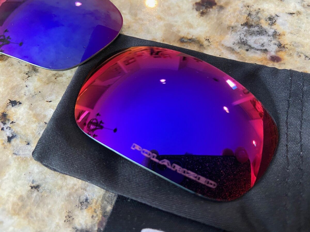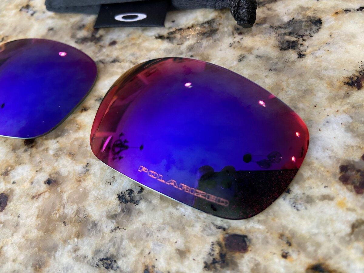 I have a pair of +Red Iridium Polarized Racing Jacket lenses for sale. I hate to get rid of these, they have great color to them, lots of red, purple, blue with yellow on the edges. I just don't use them. They are used but in great condition. There is small mark on the red lens, so small it was hard to capture in the pictures. There is a small mark below the "polarized" etching but when the lenses are mounted, you cannot see it. I'm asking $55 shipped CONUS.