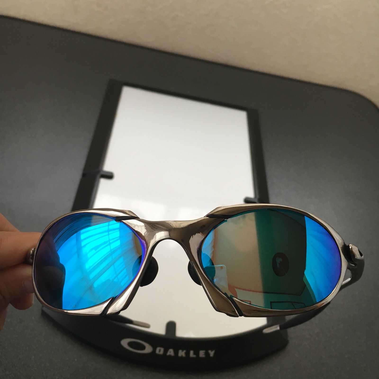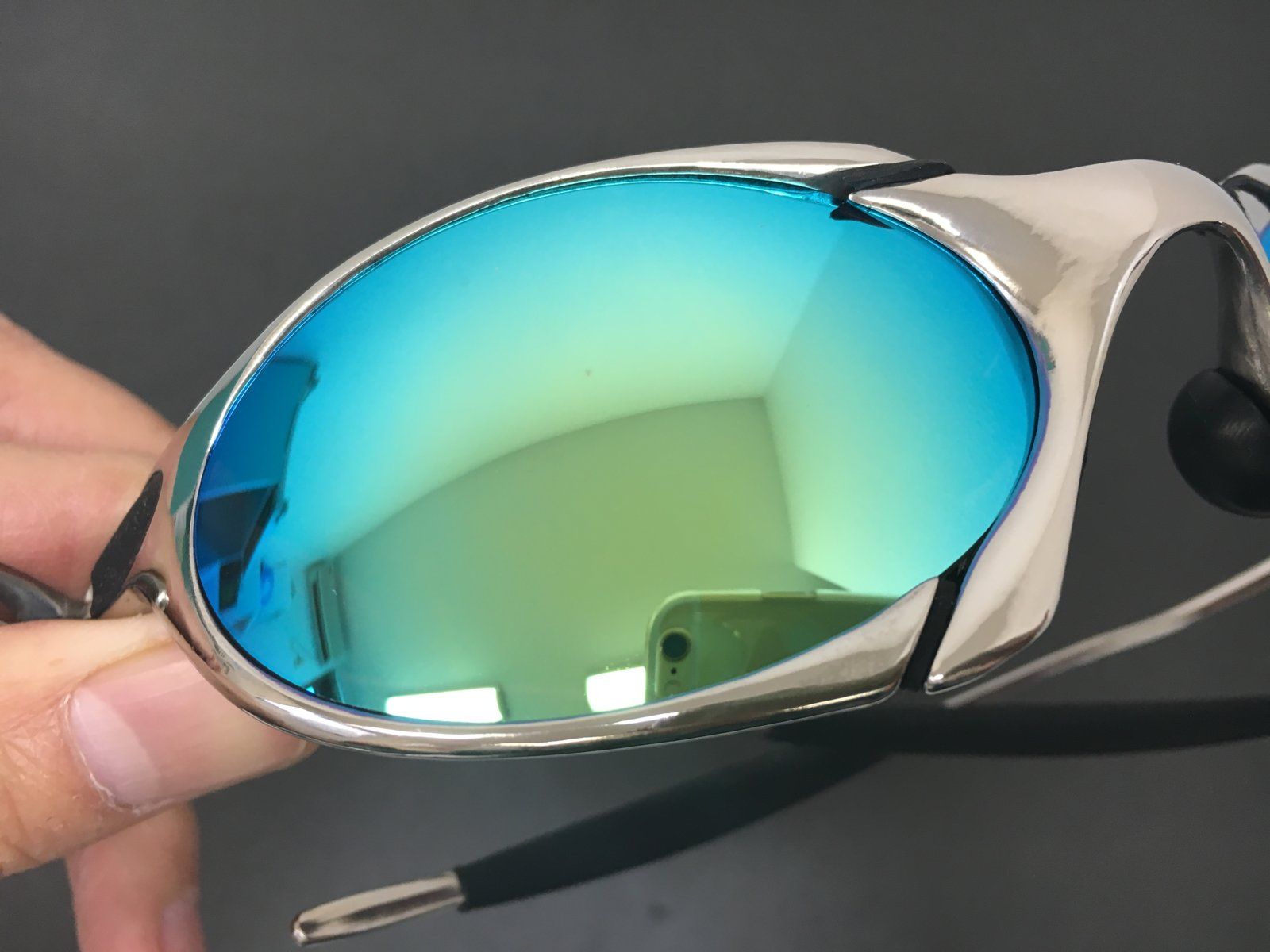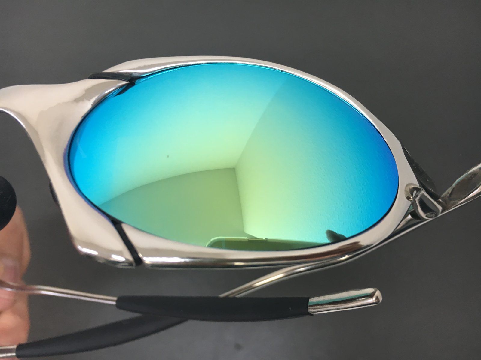 Here an R1 Polished frame custom from plasma (serial number preserve) with Linegear Turquoise Blue Polarized in a like new condition for sale. Frame & mf bag.