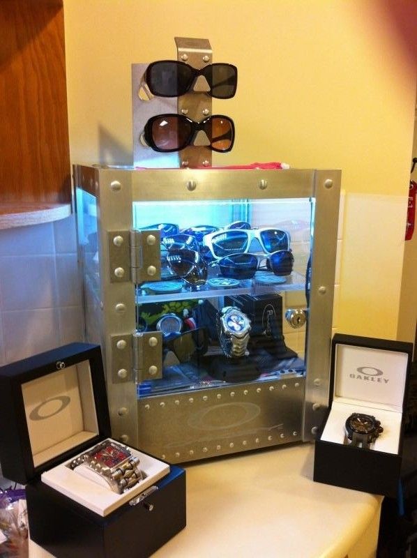 This is my collection so far. Everything is displayed minus the Jupiter Chip Foose, Frogskin Old Glory's and Jupiter Camo Fuel Cells. The Missing watches are a mint Timebomb Stealth and White GMT-both lost during their tune-up at Oakley. I am shopping for replacements for both, wasn't happy about the loss.