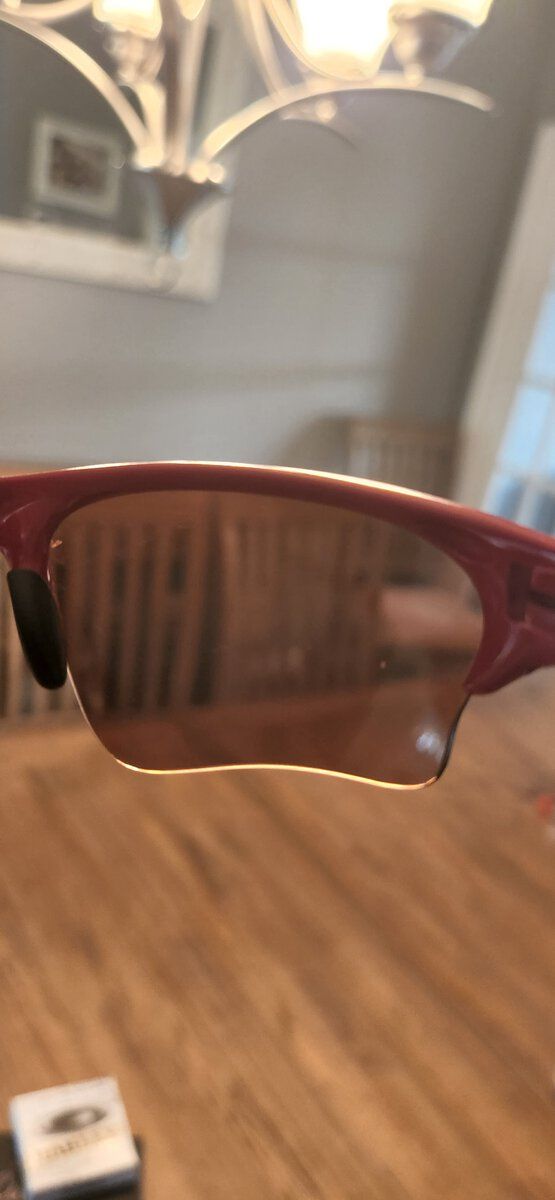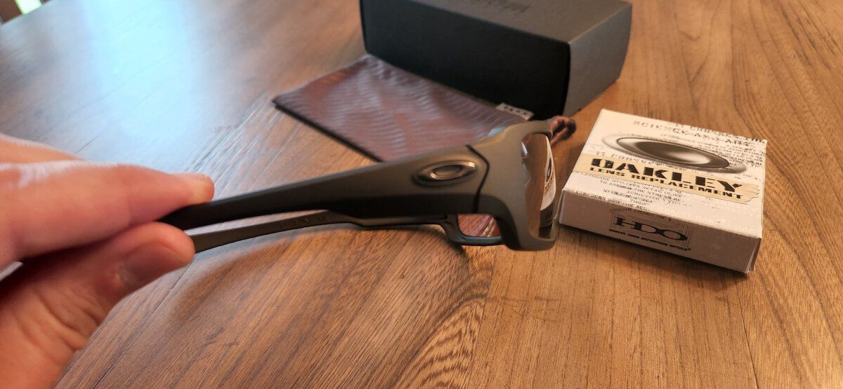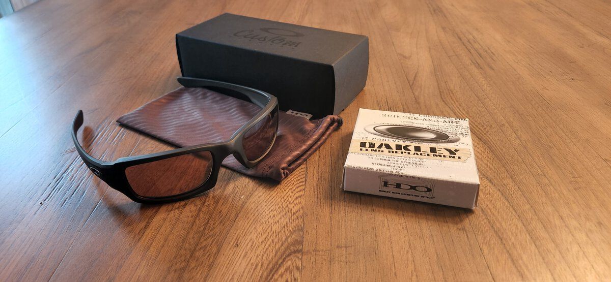 "Oakley" on nose bridge shows some wear. Frames are pretty good other than that. Lens have some wear with marks scratches and slight peeling. Still wearable. Great pair for a beater pair or custom. Includes a second pair of brand new FUSE grey lens.