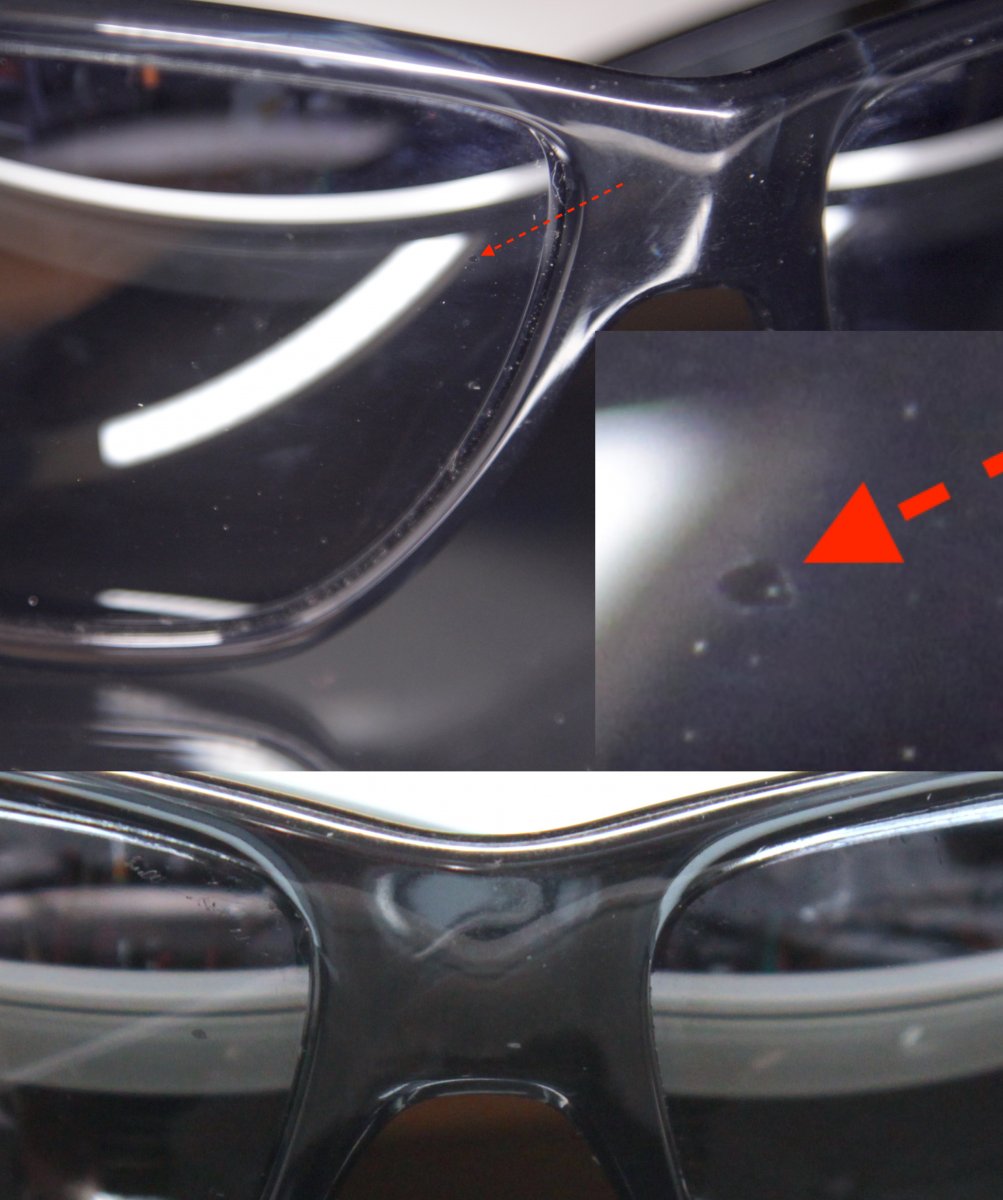 Black Iridium - in good condition, inner top corners have small peel in cc and right lens has a small mark towards inside edge as shown.