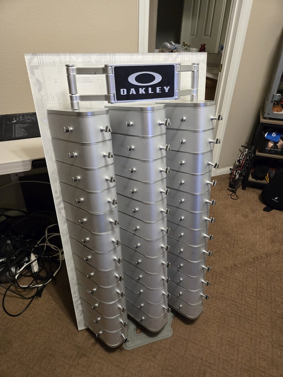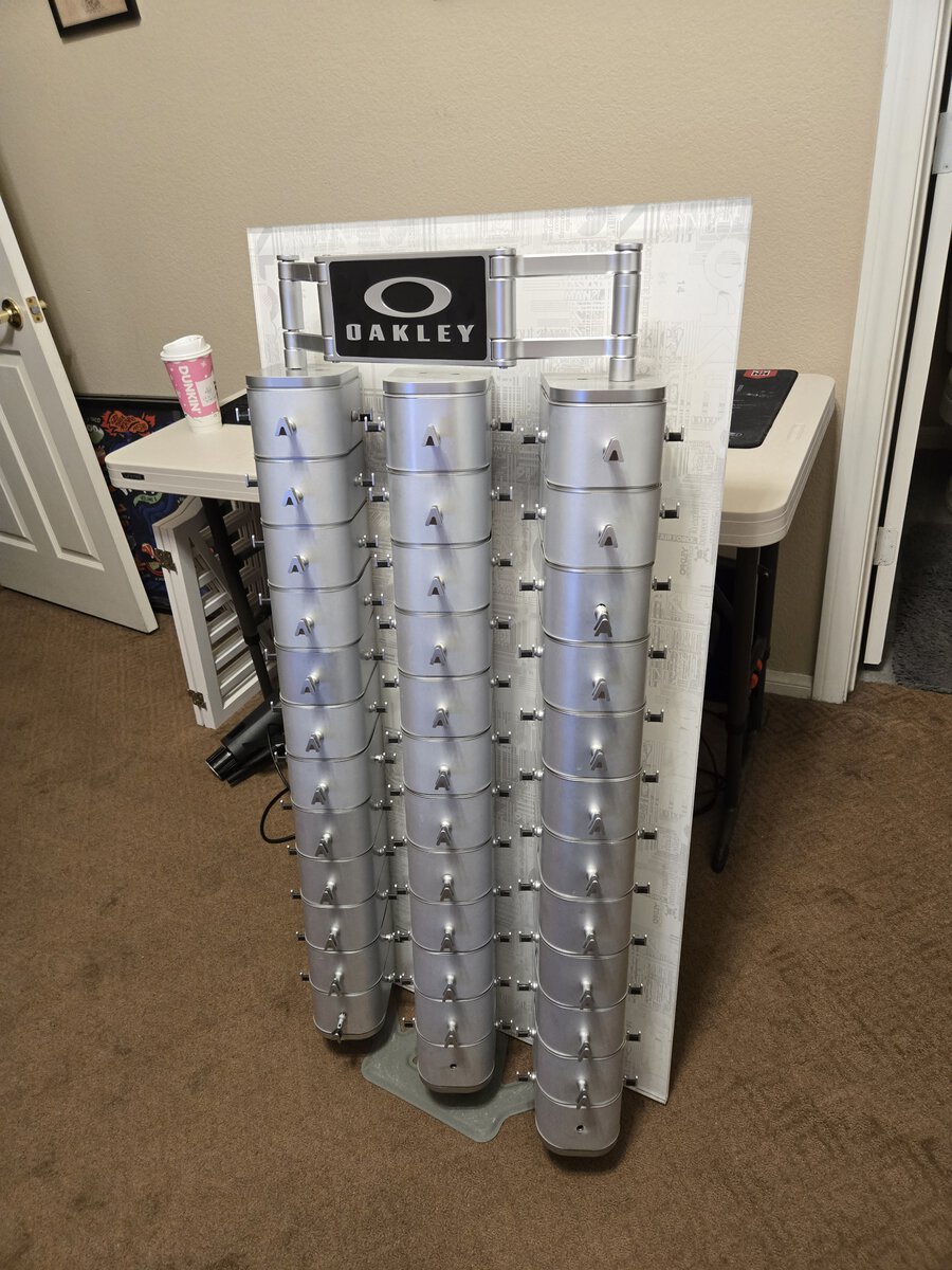 And of course I have obtained more for my collection. Some eye jacket redux's, serialized juliet(now has new oem lenses installed), and in keeping with this thread topic, a new wall mounted display. It needs just a little work, but i was pleasantly surprised when the seller threw in extra pegs which would have been a big obstacle! The seller is a general contractor, and when the Oakley store closed in their area in another state, he had the foresight to save these displays. he actually had two of these!