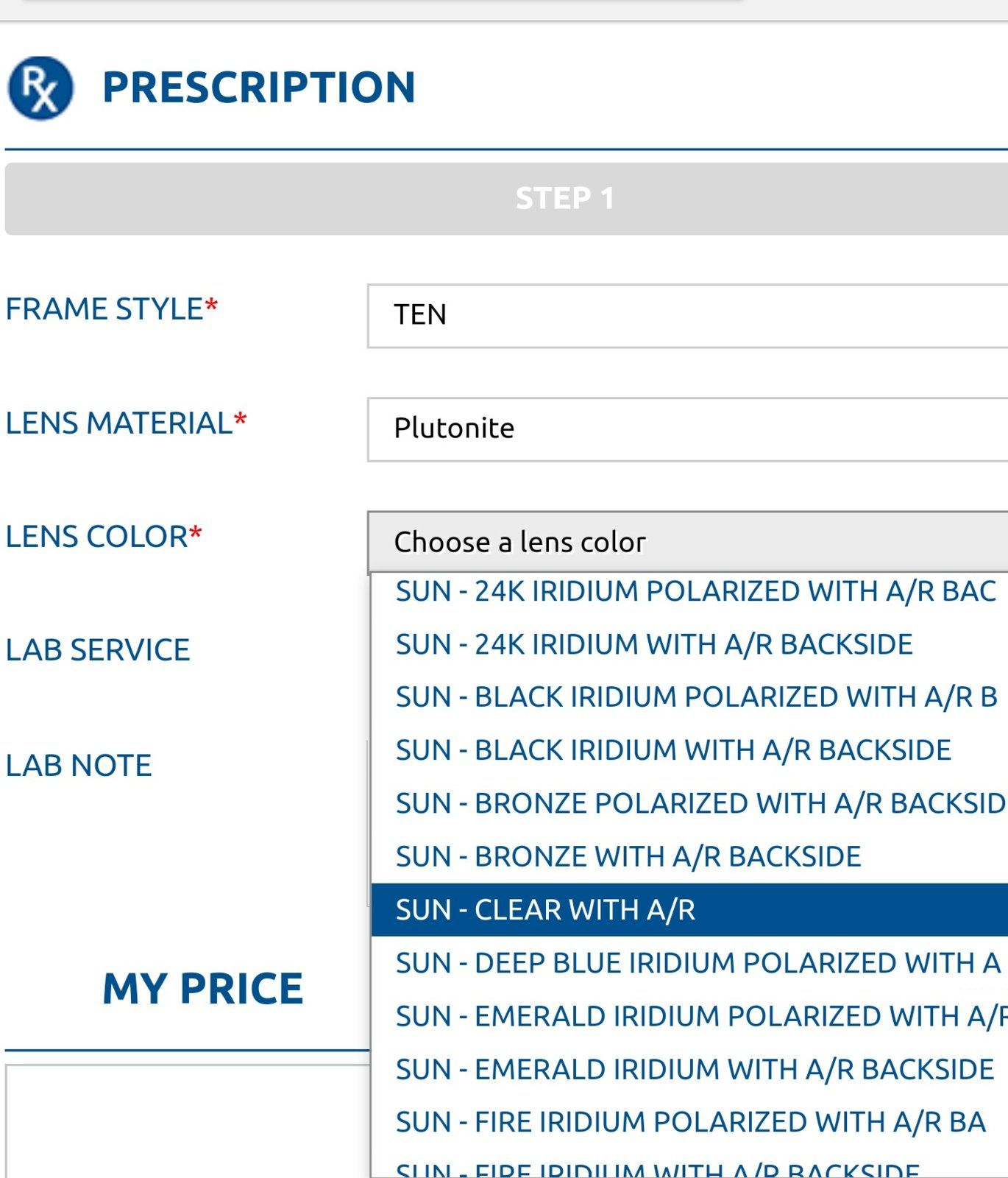 If you'd like a price quote send me your RX and PD info anytime with the frame and lens color of your choice. Ciao.