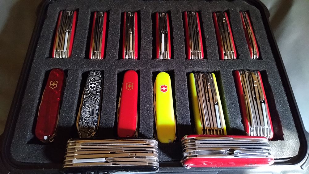 I collect vintage Victorinox Swiss Army Knives, mostly from the 70's to the early 90's. Ever since my first one in the late 80's, I'm never far away from one. Just one storage case shown.
