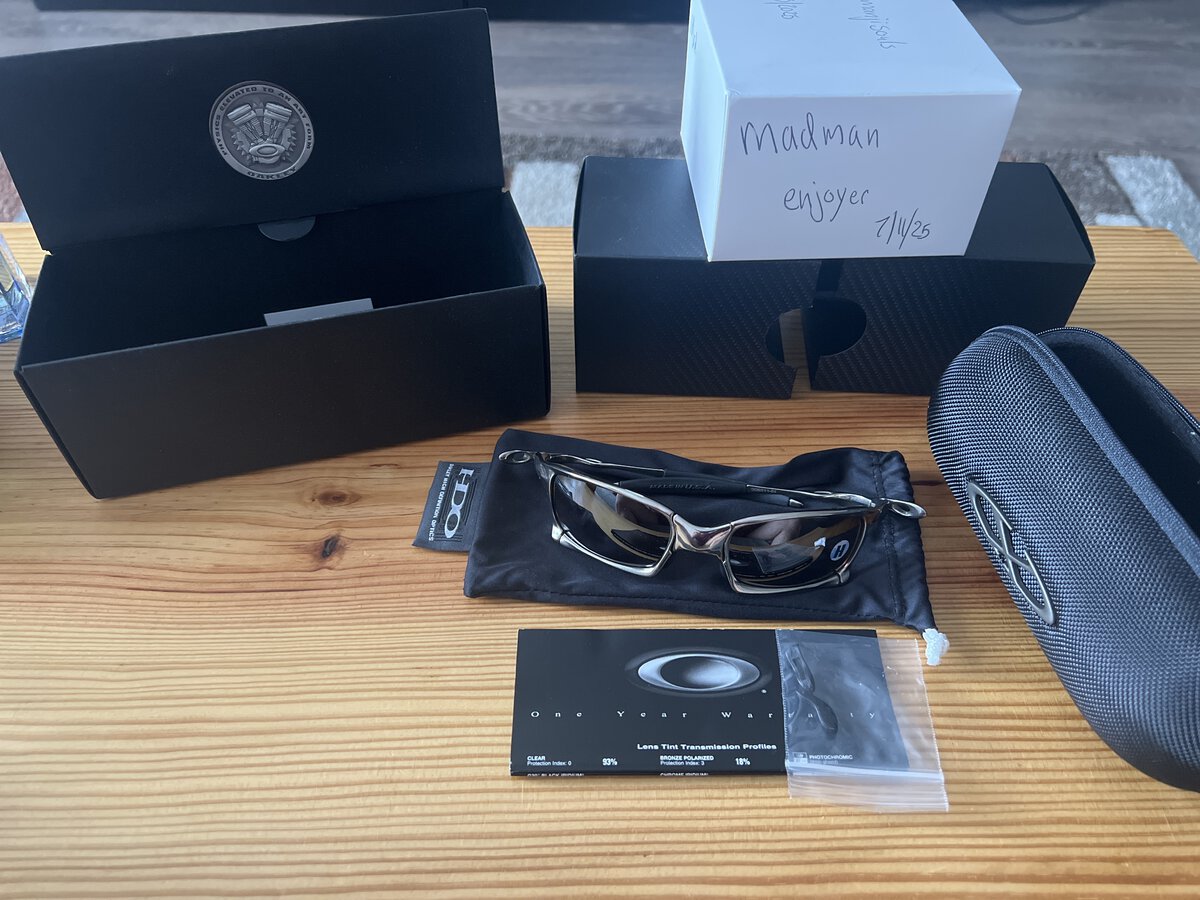 Hello guys! I am selling this pair of LNIB, Oakley X-Metal X-Squared with a polished finished and VR28 lenses. Still have original factory sticker! I purchased these and have tried them on a few times and realized they are just not right for me. I have included a link to a photo album, but please reach out to me if you need any specific images or have and questions or concerns.