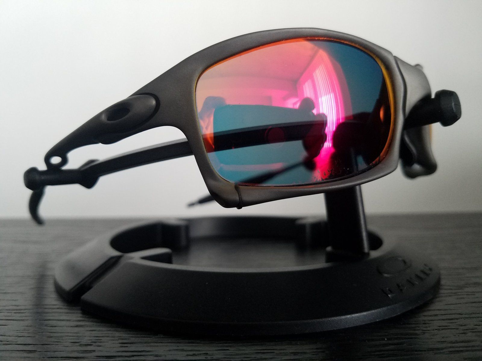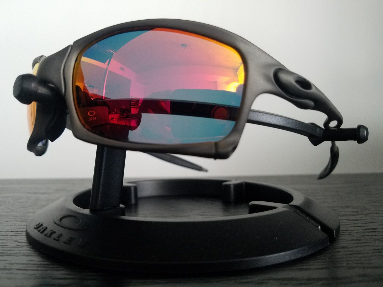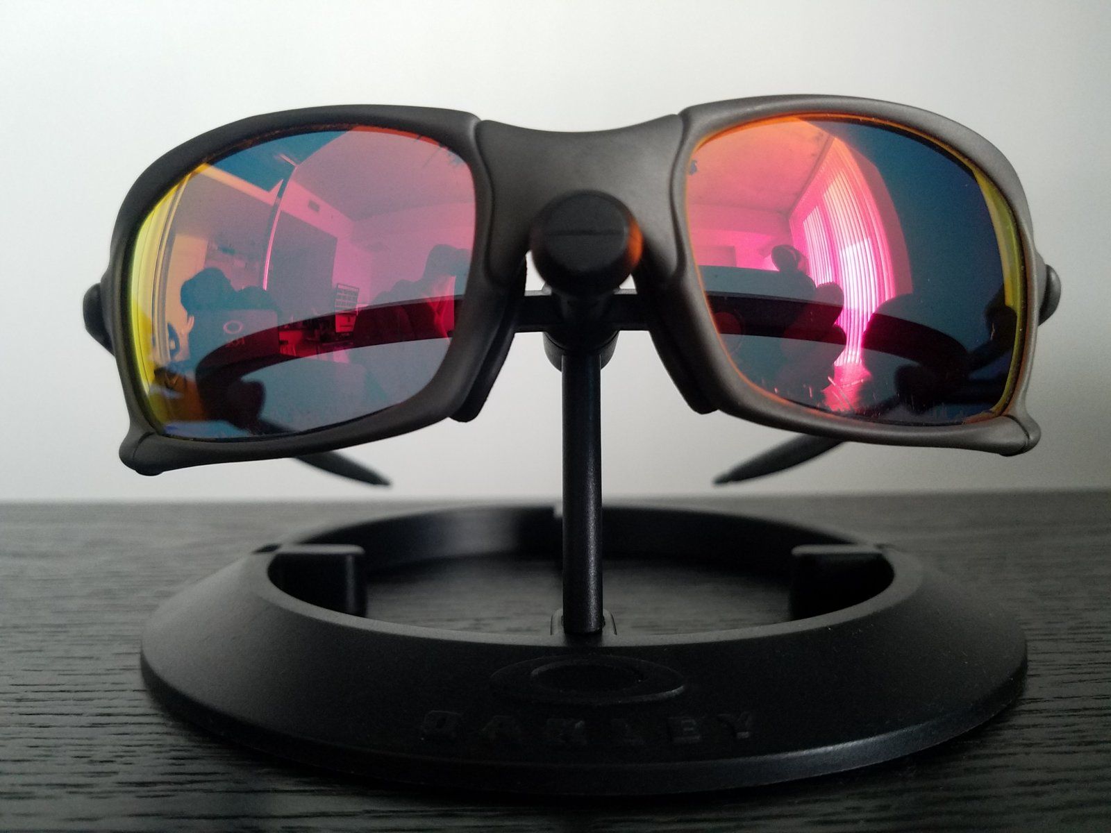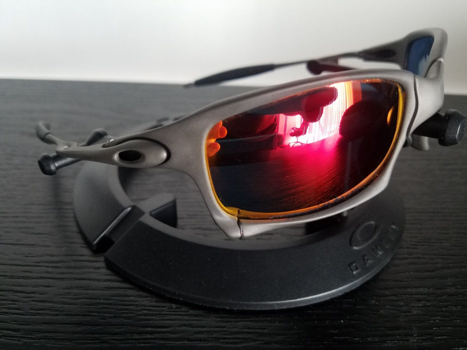 X-Squared X-Metal/Ruby. Warranty Frame in mint condition, factory tight, rubbers like new, all OEM. No SKU. Lenses are ruby (not fruby) and they are perfect for wearing, but the iridium is peeling on the outside, bottom of both lenses (see pics 8 & 9). When wearing, the lenses are extremely clean, there are no scratches (see pics 6 & 7), and the peeling of the iridium can't be noticed at all (see last pic).