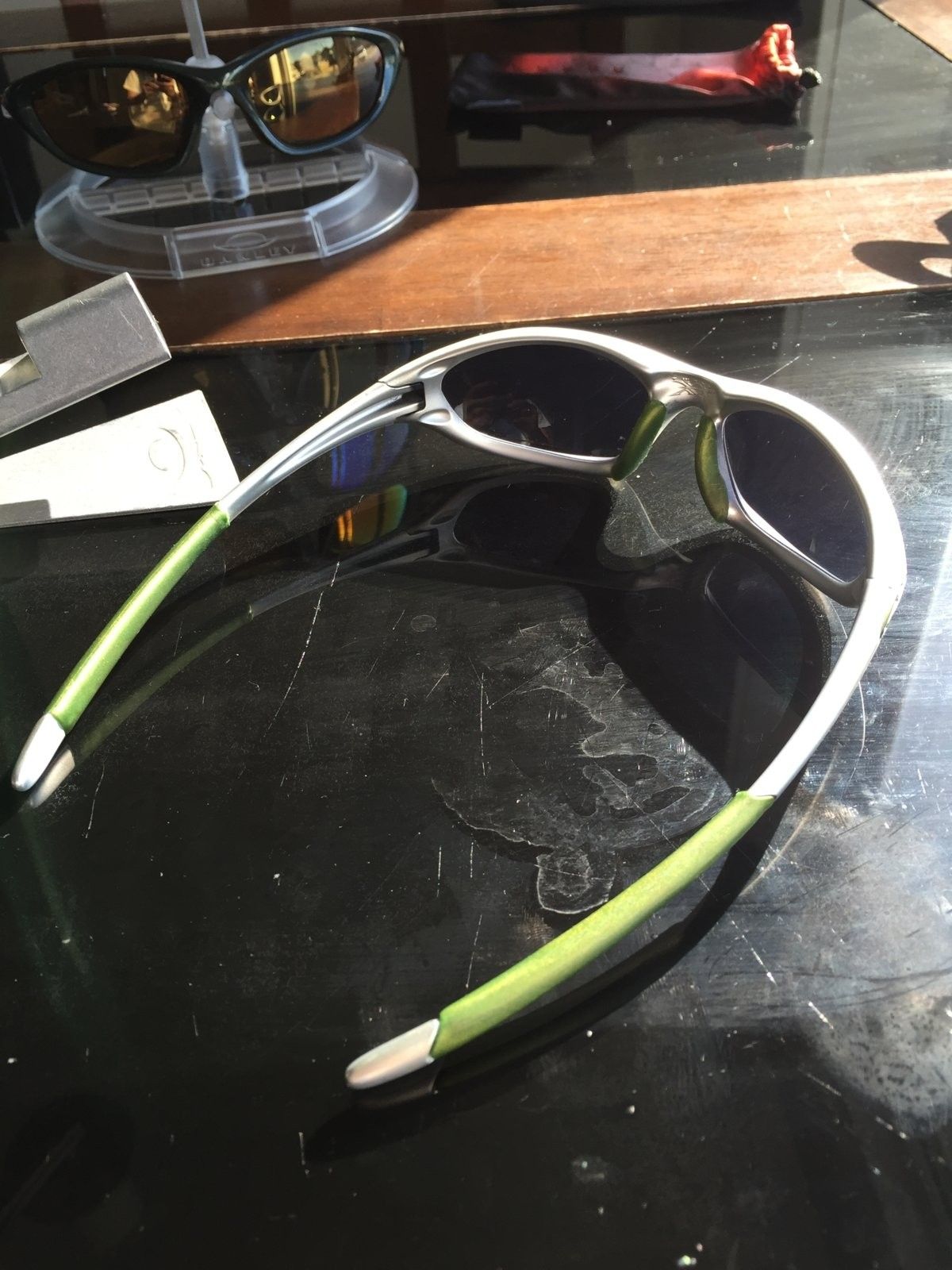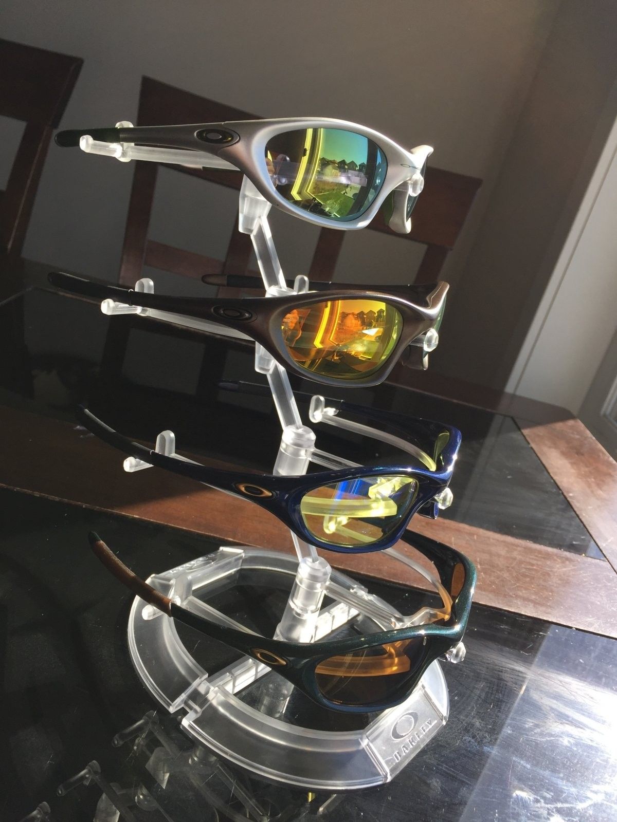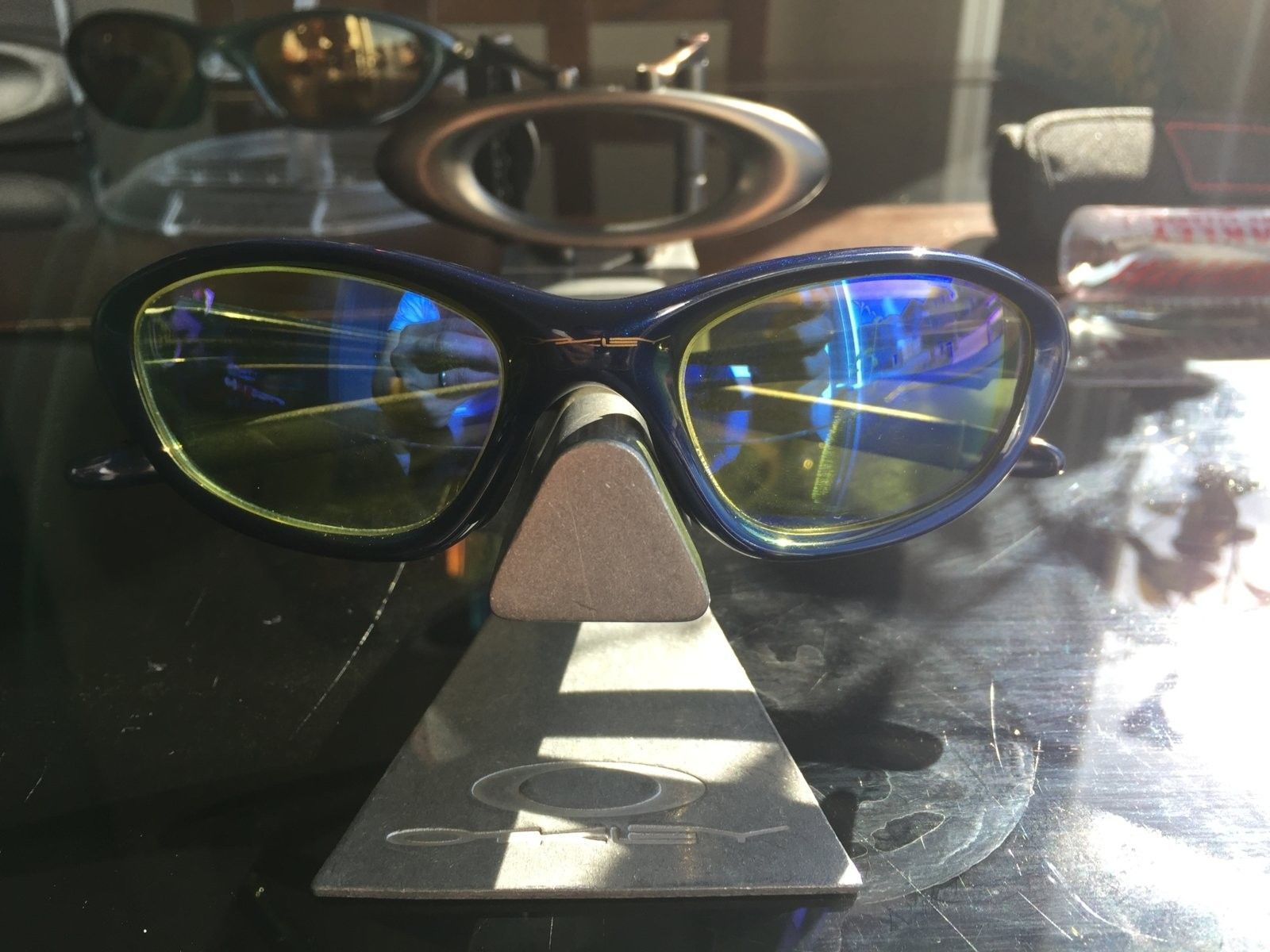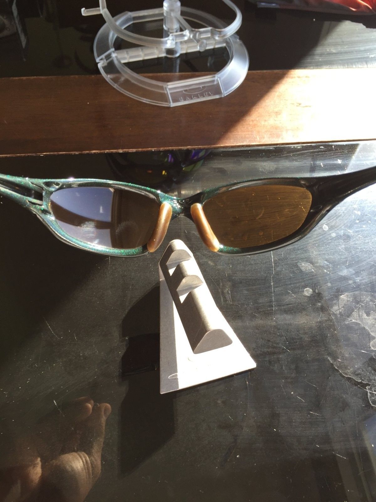 I bought this lot from an avid Oakley Collector. He had lots of Oakley rare collectibles. Most Came from Oakley in California but some from Europe and Holland.Unfortunately, he got layed off and spouse got sick so he sold most of his collection of X-Metals and others. I was able to acquire these from him, his few last pairs.Displayed all these years, no boxes. Most are mint condition if not all.Most if not all are OEM.Never used them as well.Not too familiar with models and colorway so please bear with me