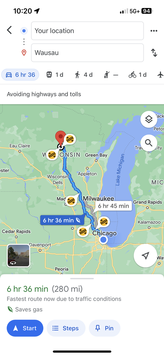 Wow. That's cool that you guys can drive like that. Here's a calculation of where I'll be after about 4 hours of driving where I'm at.Username Hidden said: